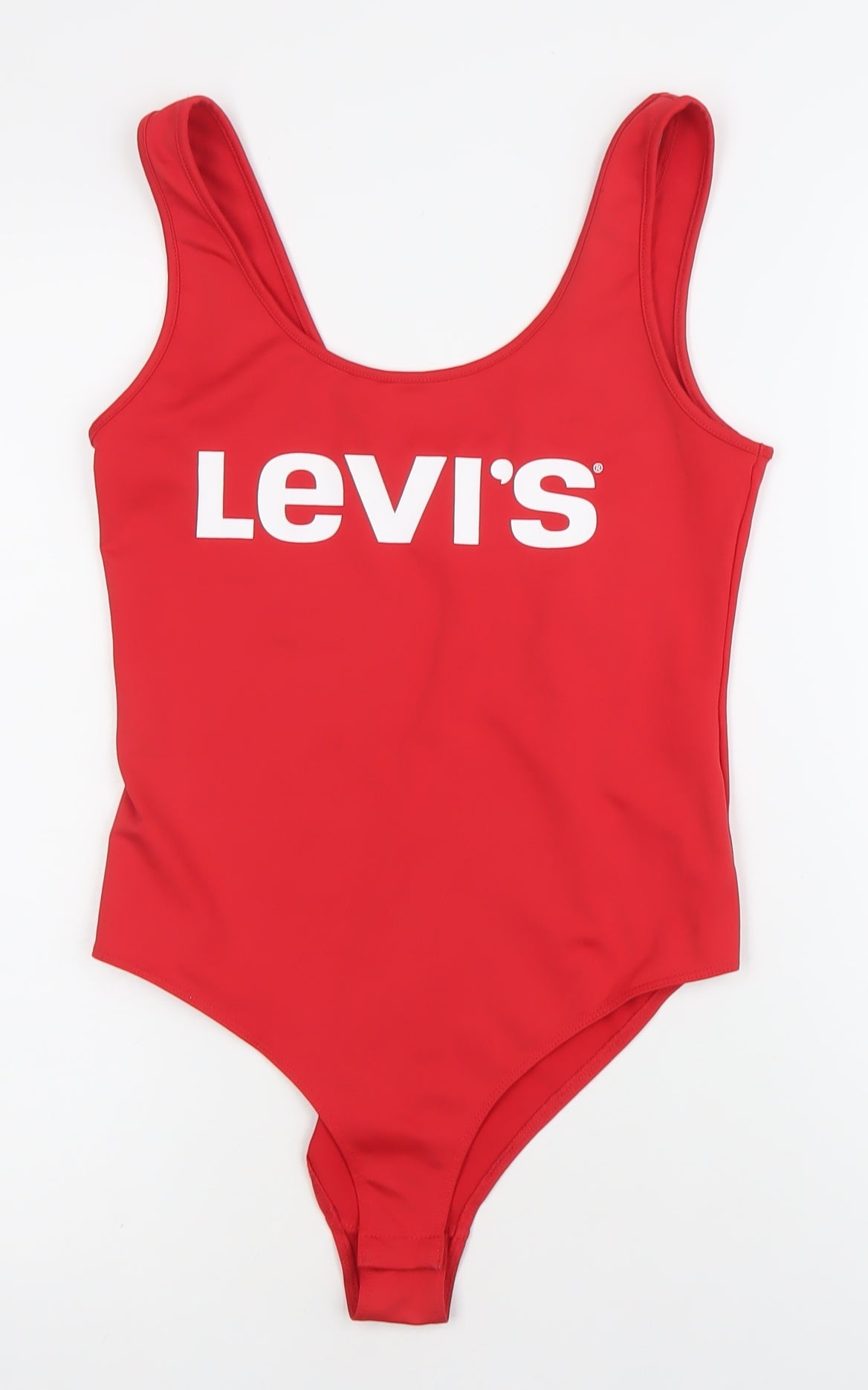 Levi's Women's Red One Piece Swimsuit Size S Wide Strap Logo