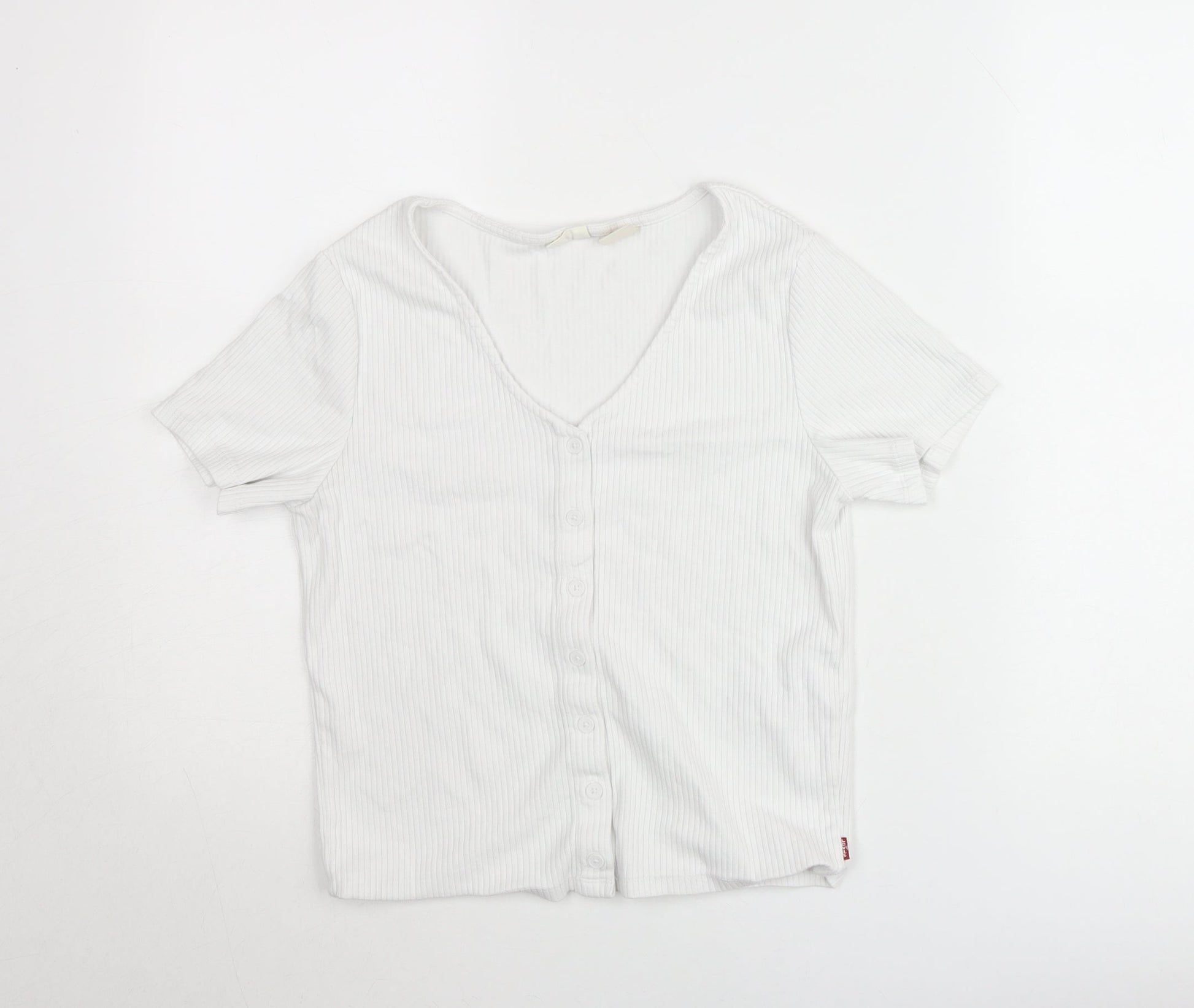 Levi's Women's White Button-Up Short Sleeve Cotton Top Size L