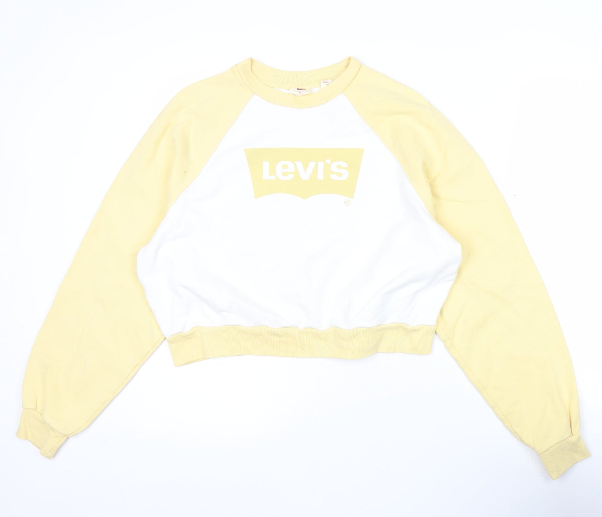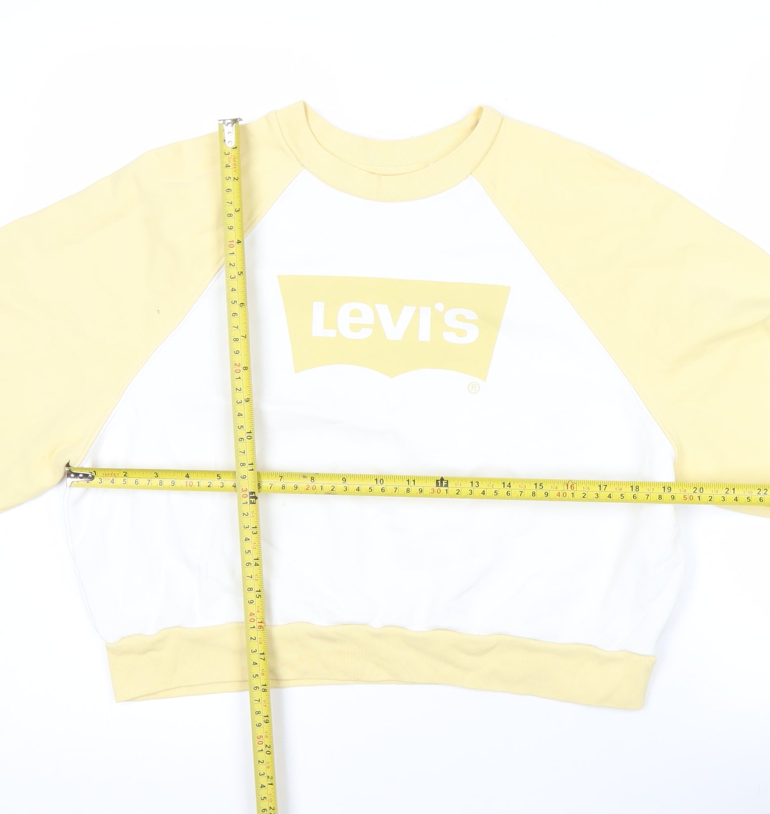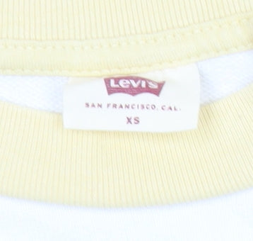 Levi's Womens Yellow White XS Logo Crew Neck Sweatshirt