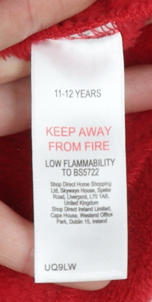 LFC Boys Red Fleece Hooded Robe 11-12 Years Belted Winter Nightwear