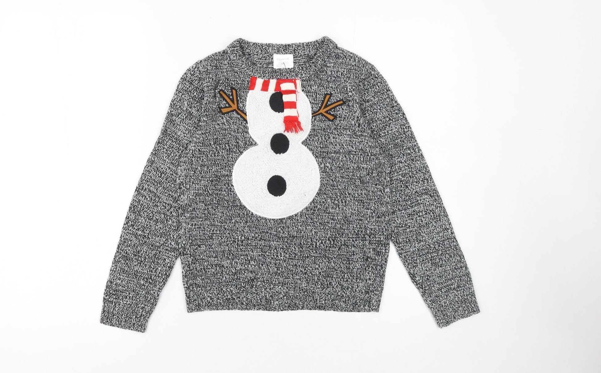 Lily & Dan Boys Grey Christmas Snowman Jumper 7-8 Years Acrylic Knit