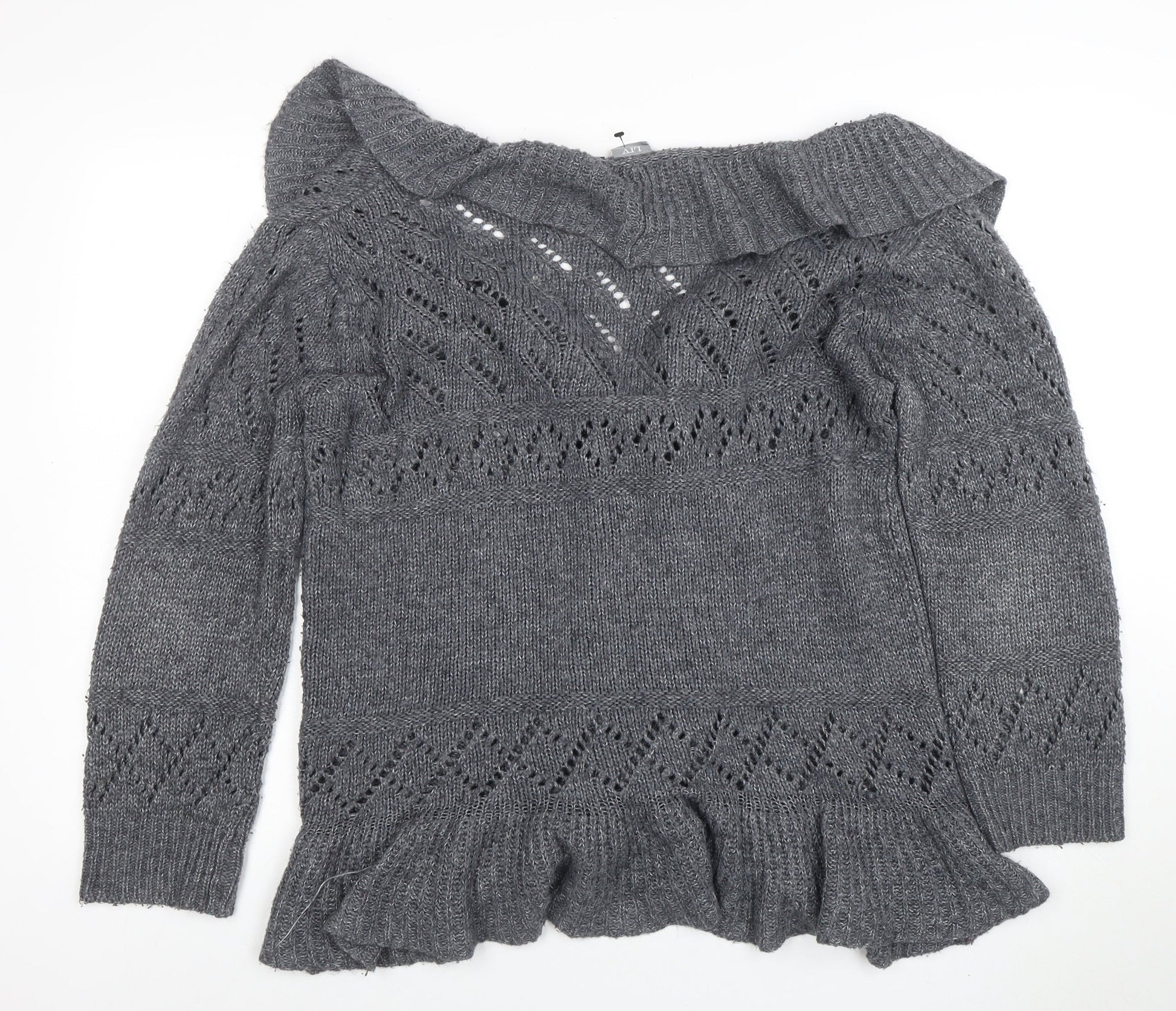 Lily Essentials Women’s Grey Ruffle Knit Open Cardigan Size 14