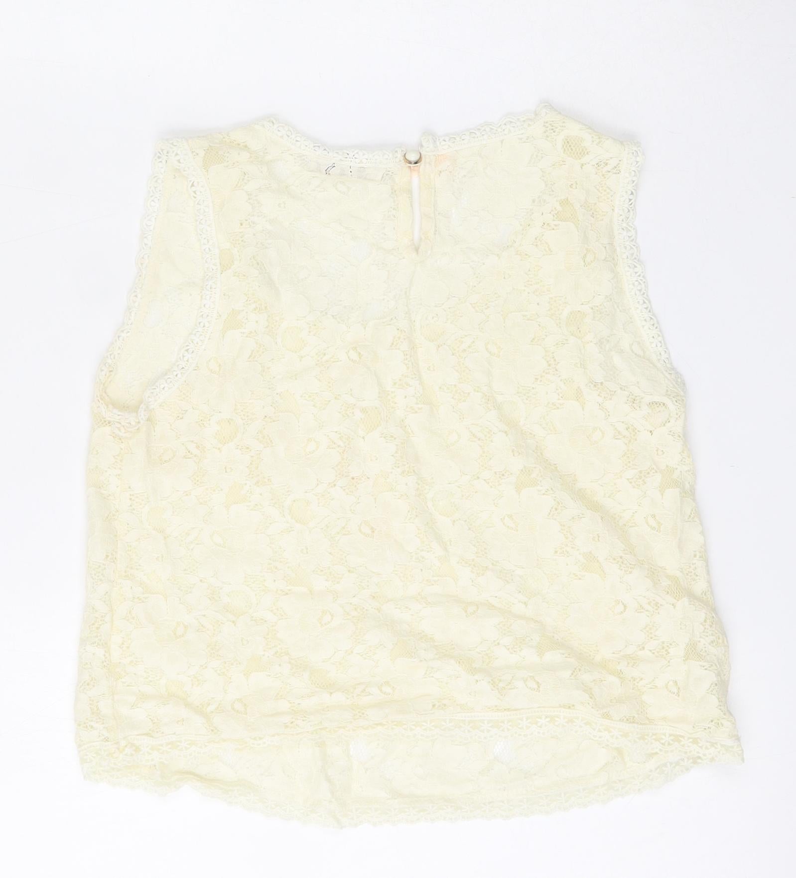 LIly J Womens Beige Floral Basic Blouse Round Neck