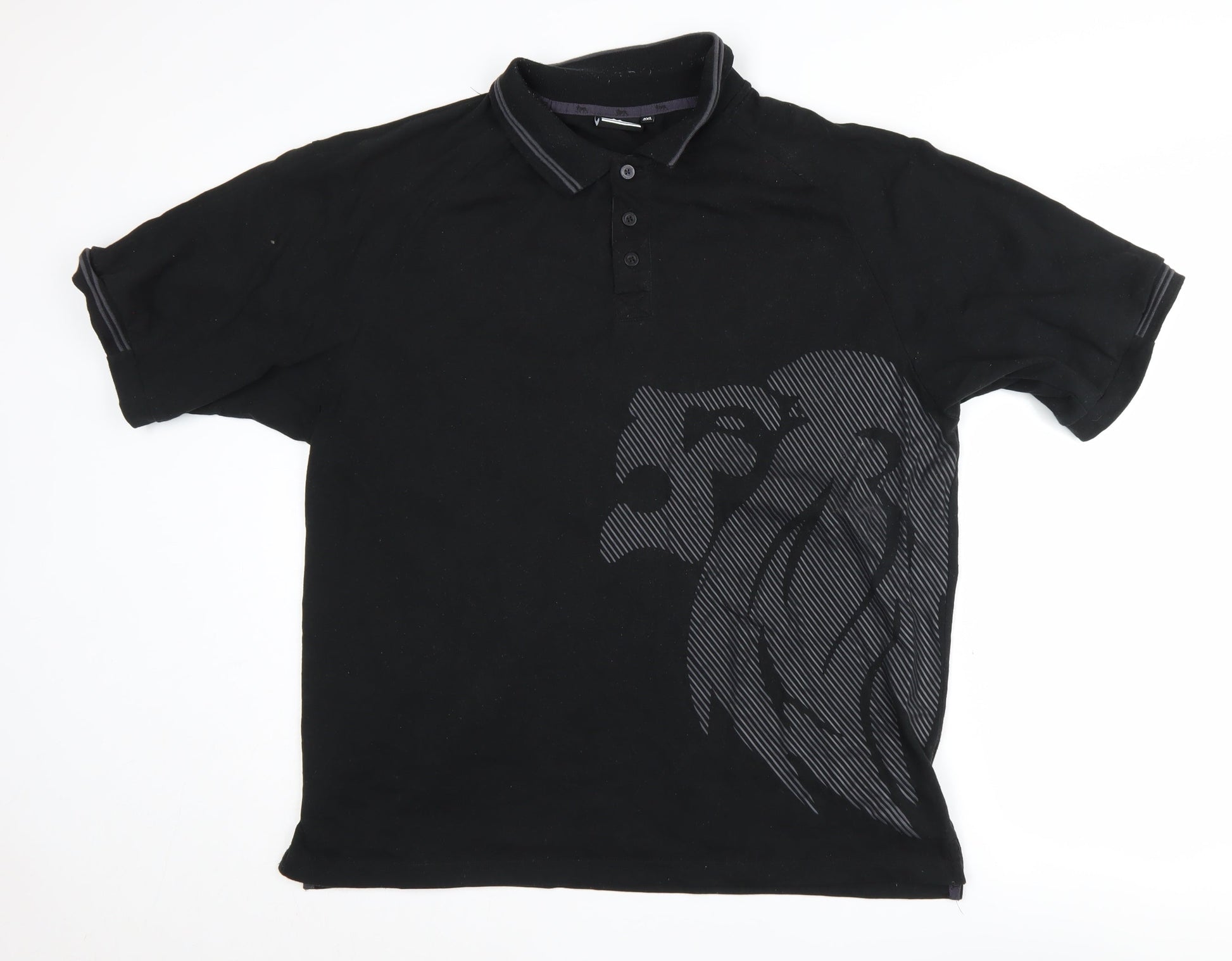 Lonsdale Men's Black Graphic Polo 2XL Short Sleeve