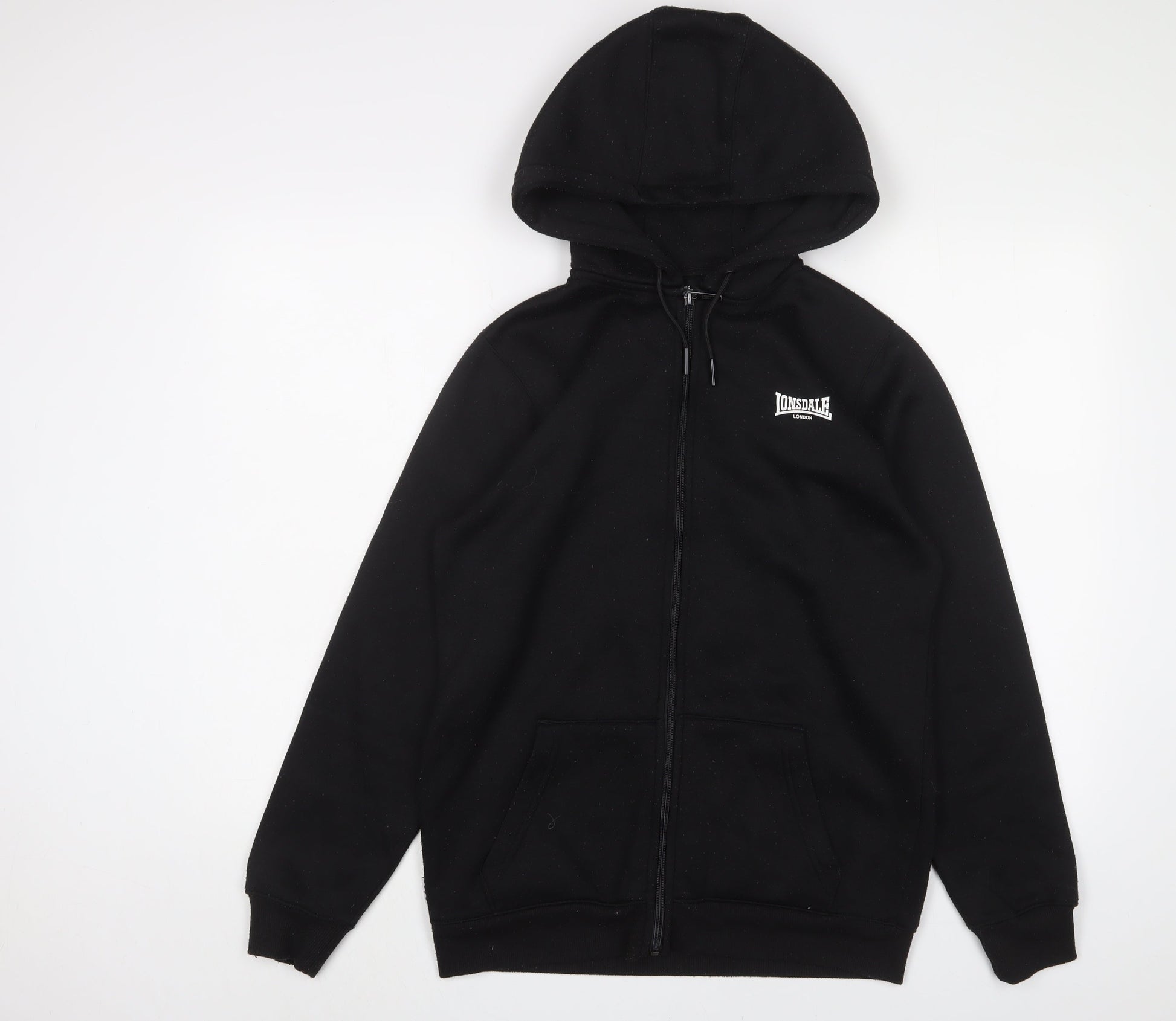 Lonsdale Mens Black Polyester Full Zip Hoodie Size S - Logo