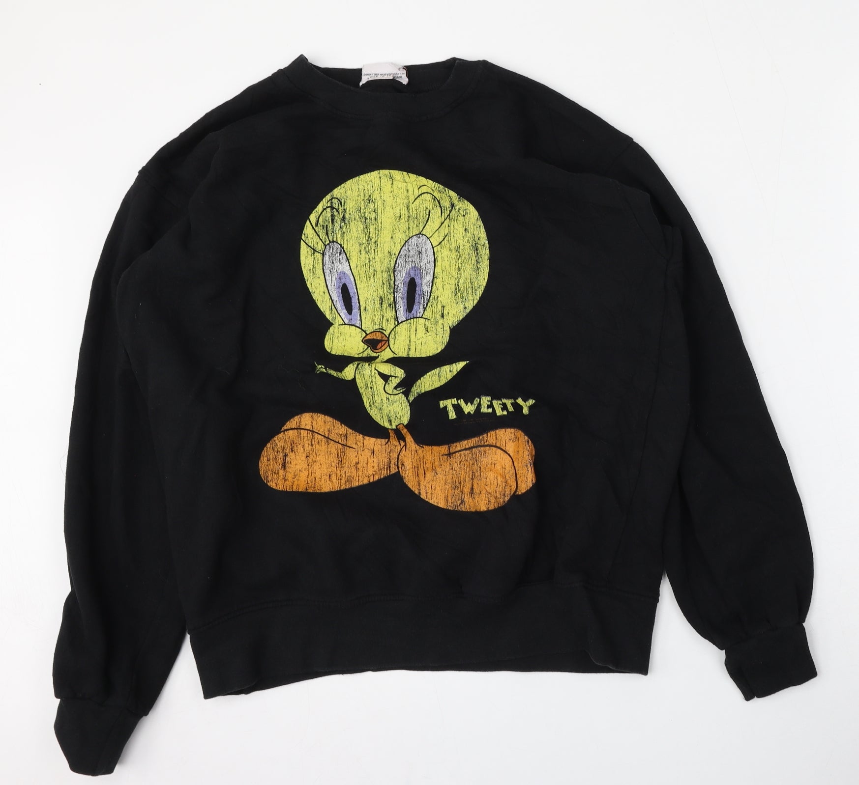 Looney Toons Womens Black Cotton Pullover Sweatshirt Size 12