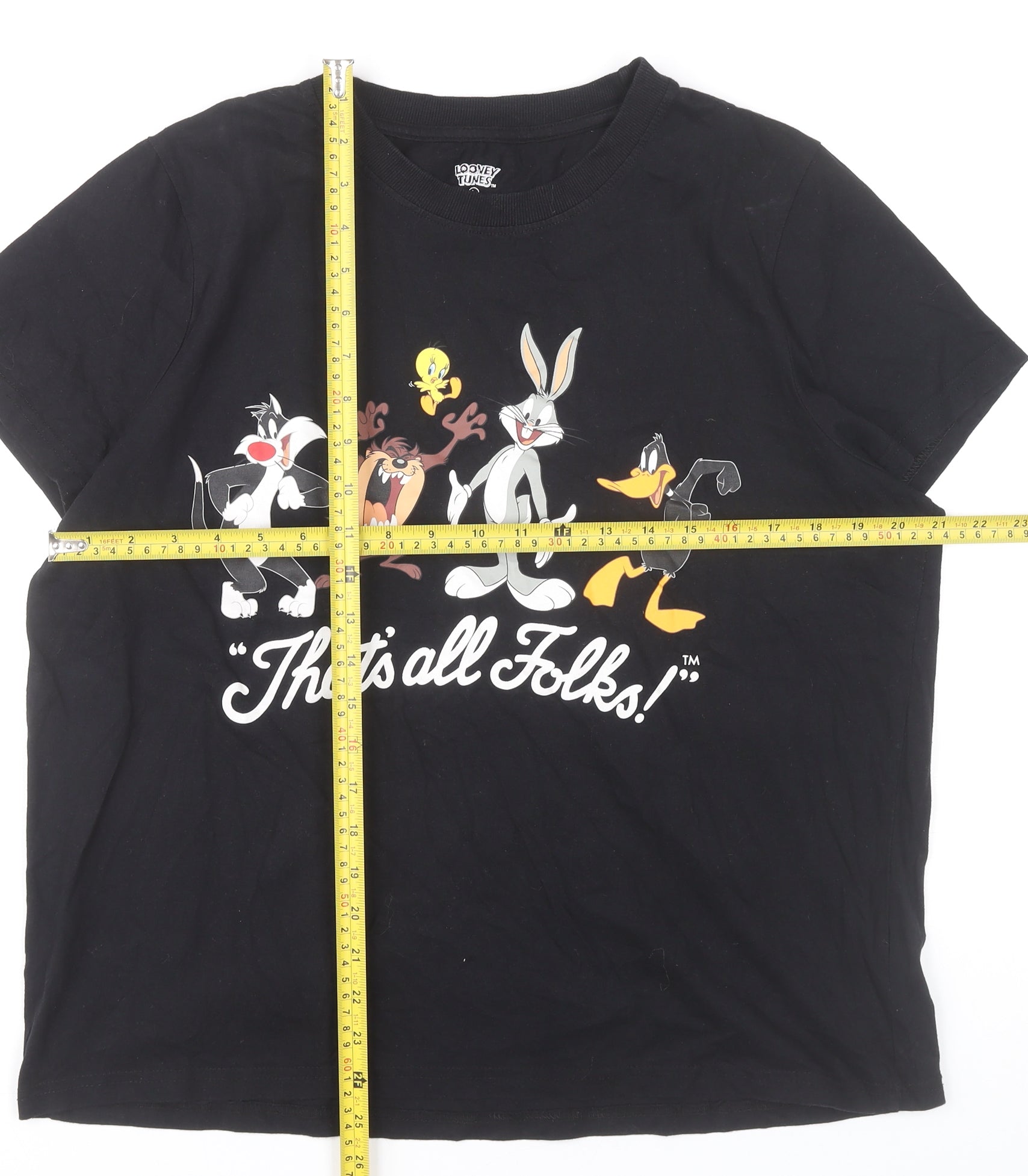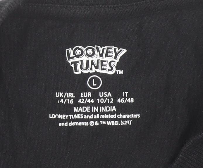 Looney Tunes Women's Black Cotton T-Shirt L Cartoon Casual Top
