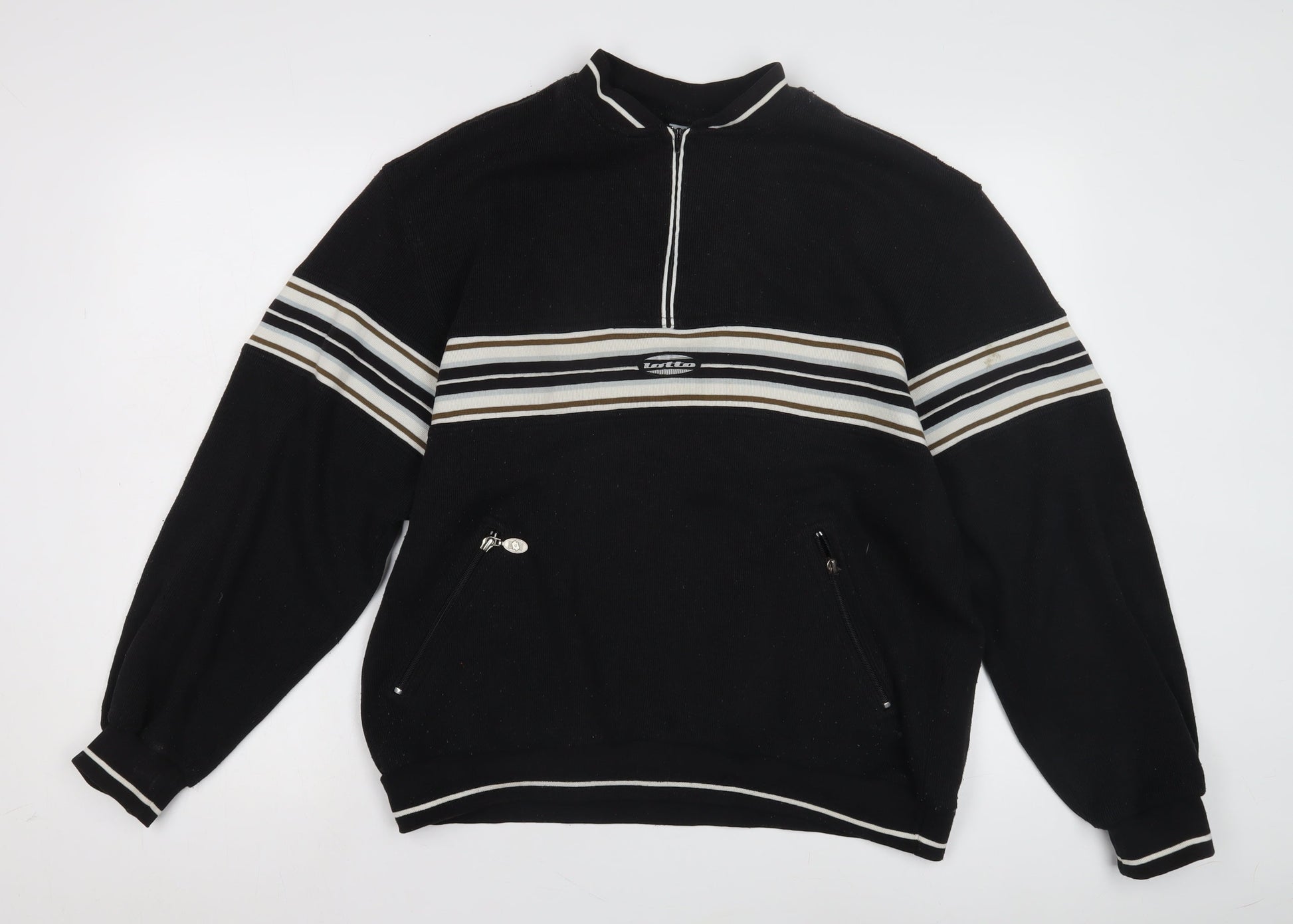 Lotto Men's Black Striped 1/4 Zip Sweatshirt L