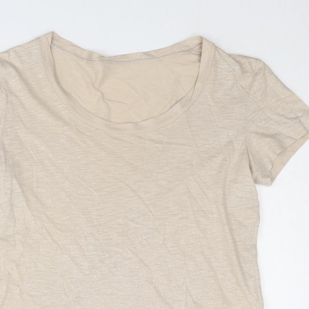 LUISA CERANO Womens Beige Cotton Basic T-Shirt Size 10 Round Neck