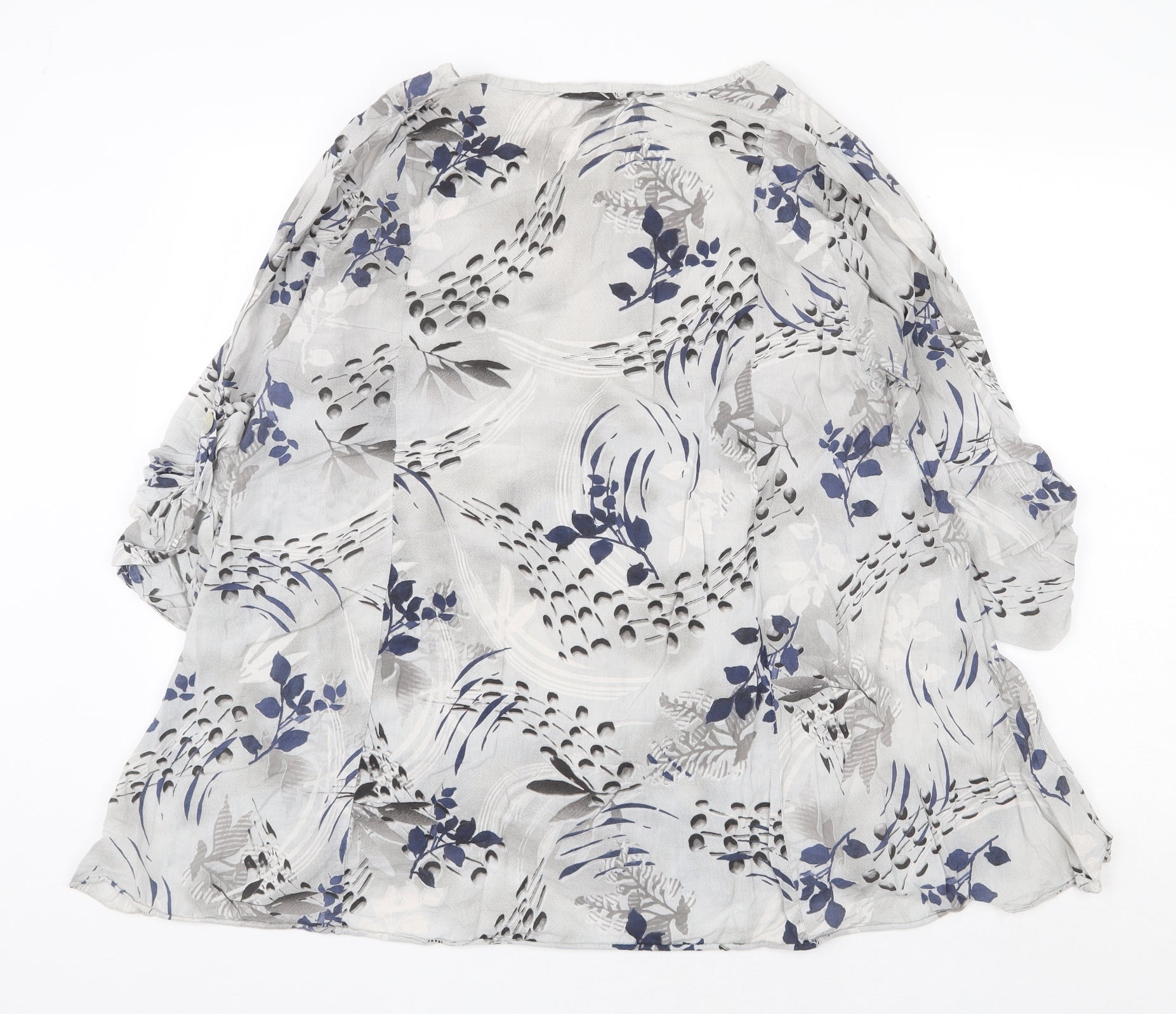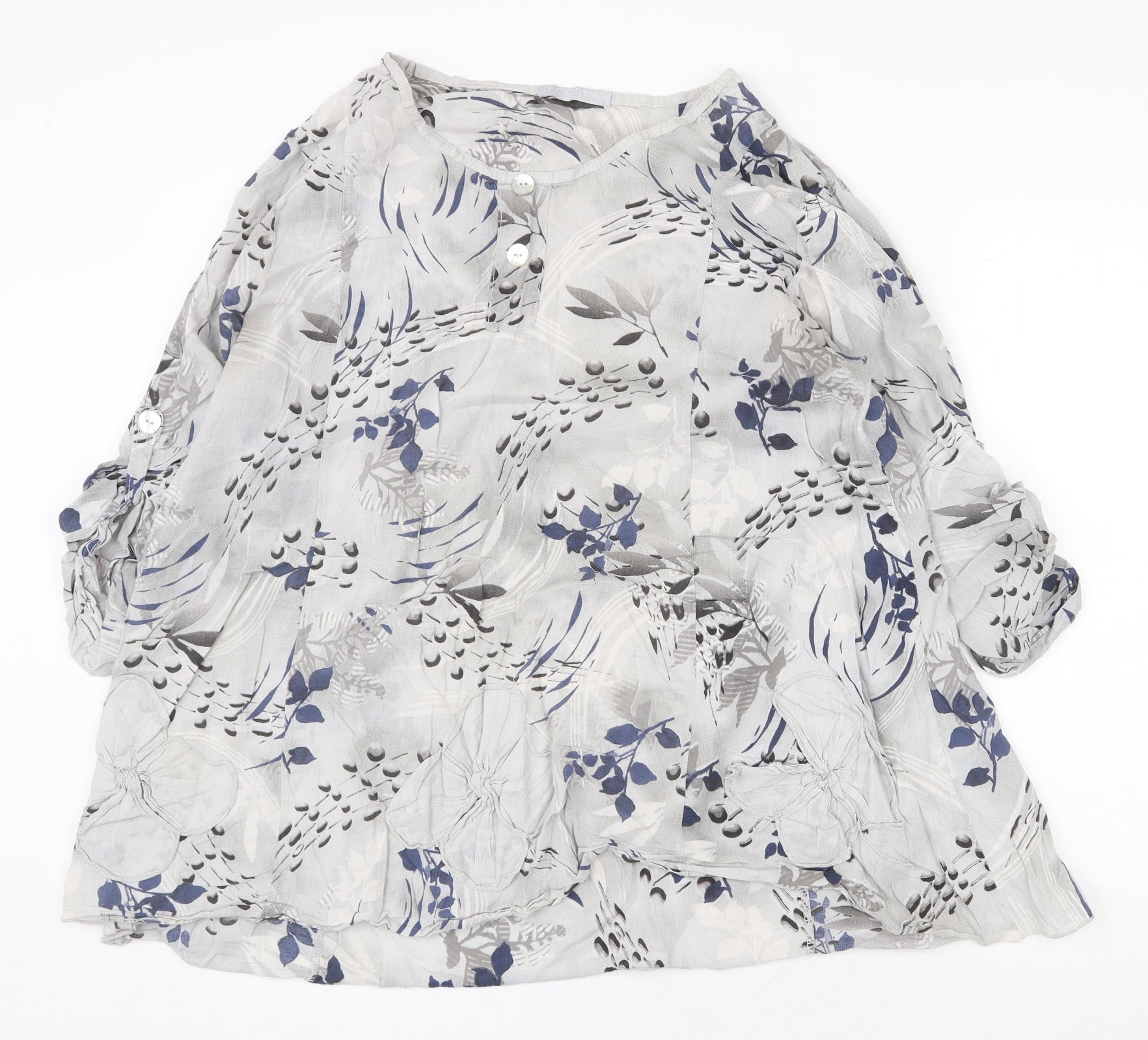 LV Clothing Womens Grey Geometric 100% Cotton Basic Blouse Size 18 Round Neck