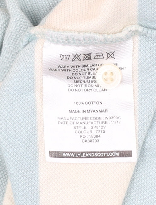 Lyle & Scott Men’s Blue Yellow Striped Cotton Polo Shirt Size M