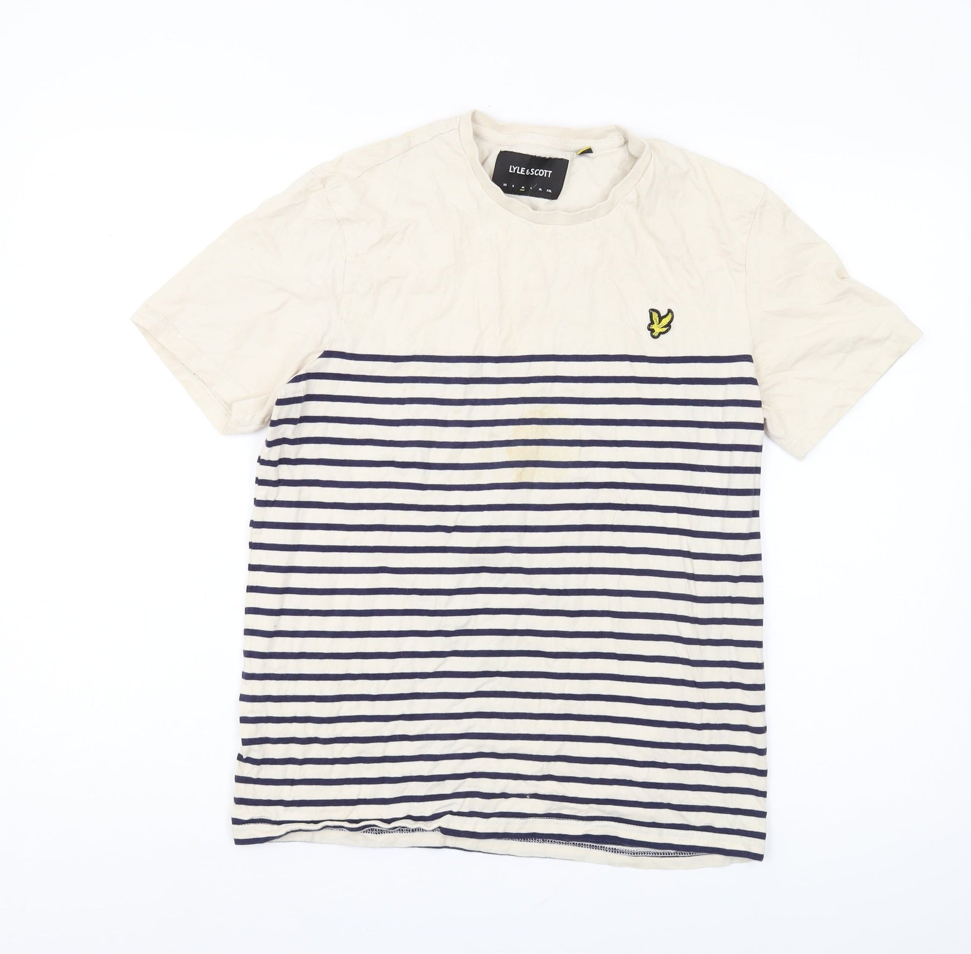 Lyle & Scott Men's Beige Striped T-Shirt, Size M