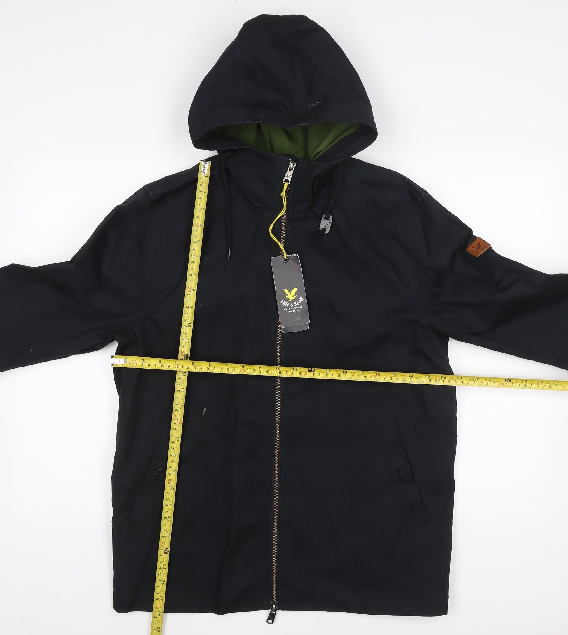 Lyle & Scott Men's Black Cotton Hooded Jacket Size M Casual Zip Coat