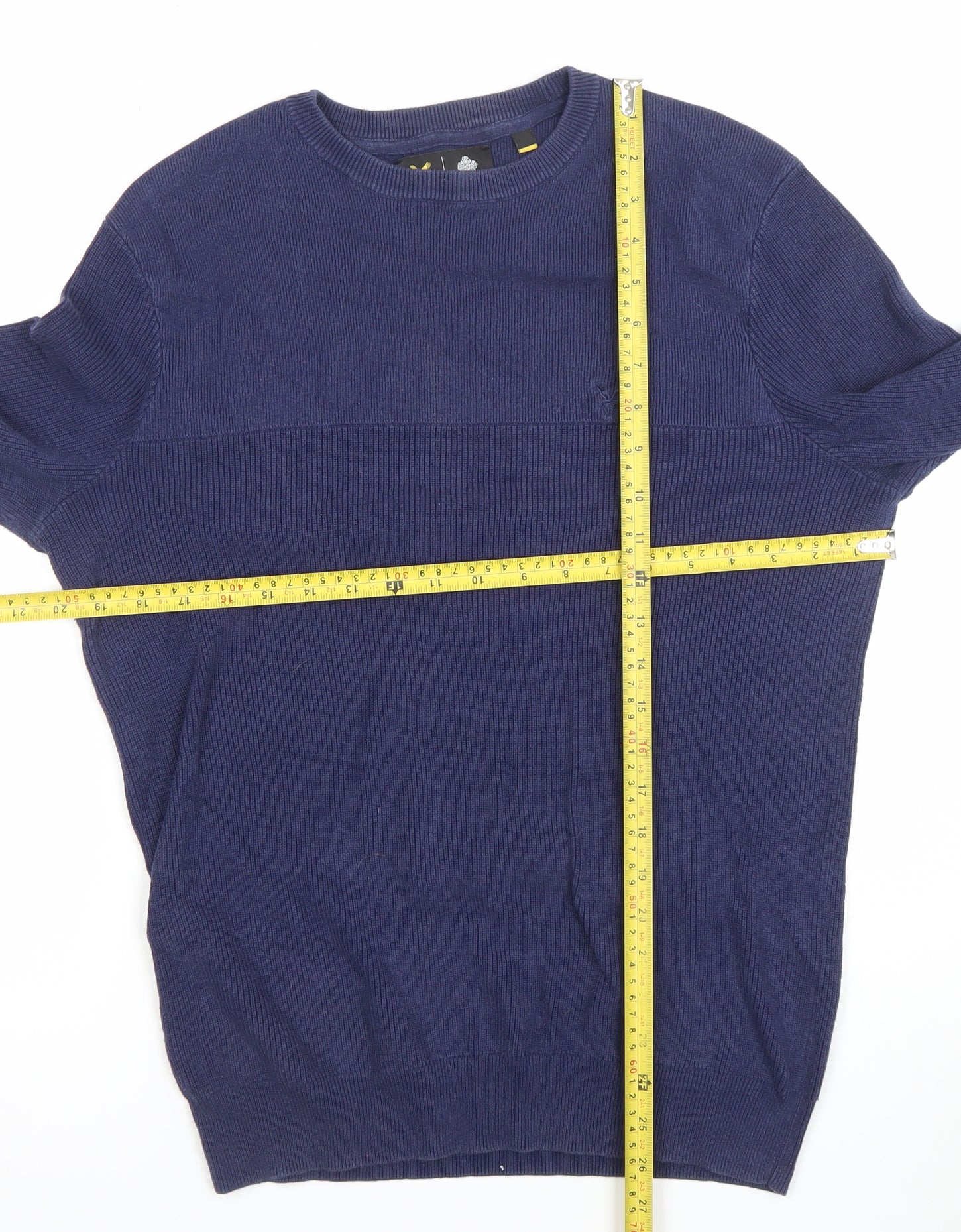 Lyle & Scott Men's Blue Cotton Crew Neck Jumper Size S