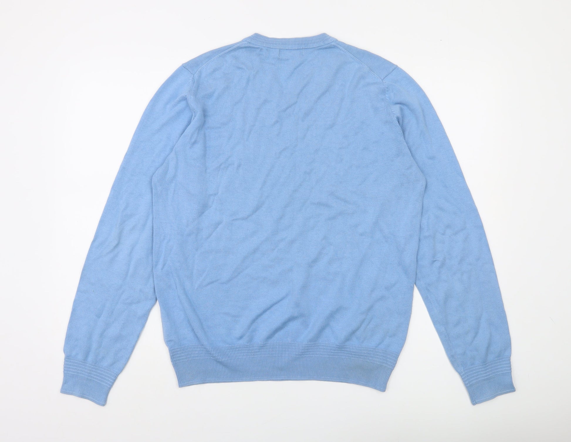 Lyle & Scott Men's Blue Cotton V-Neck Jumper Size M
