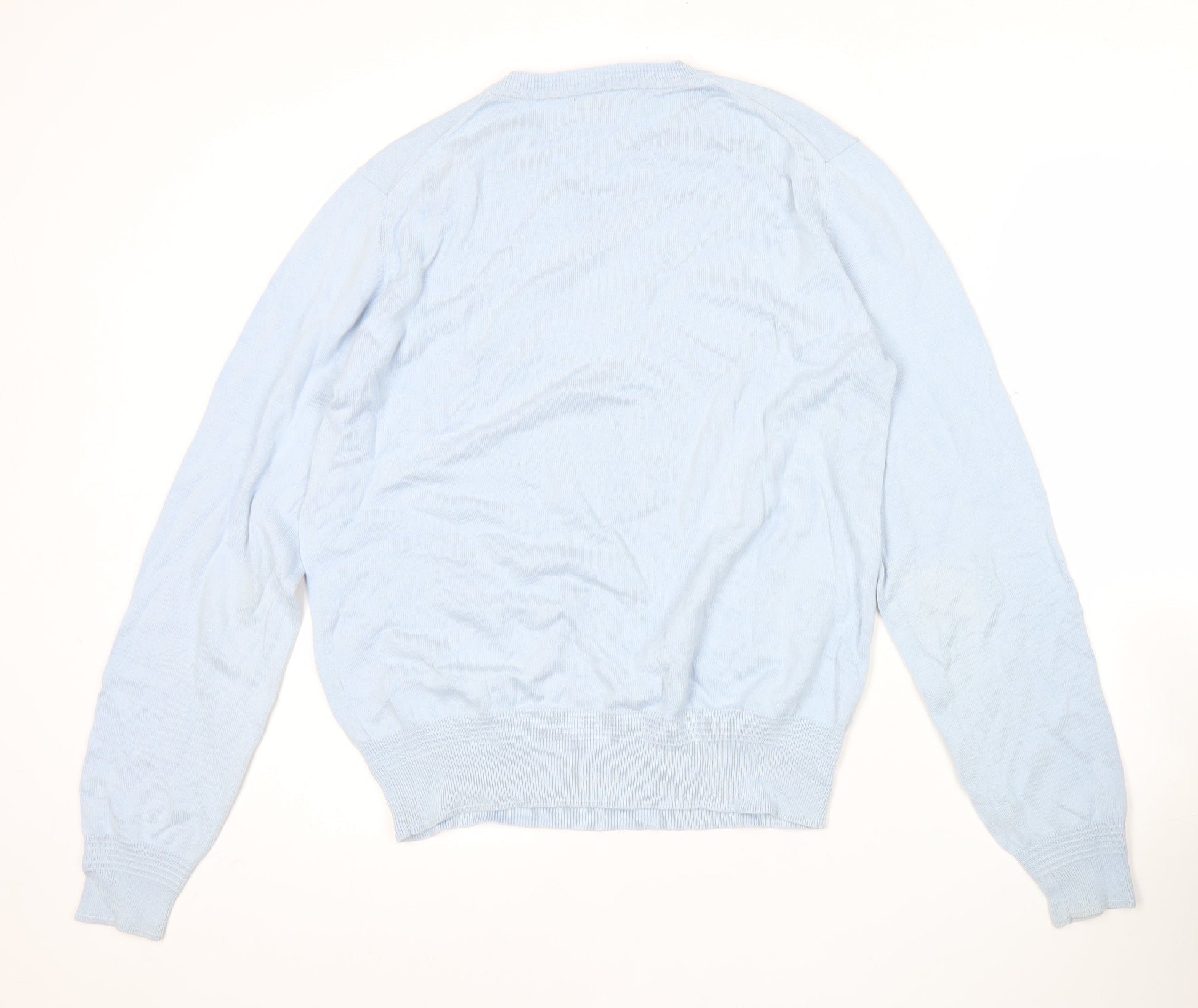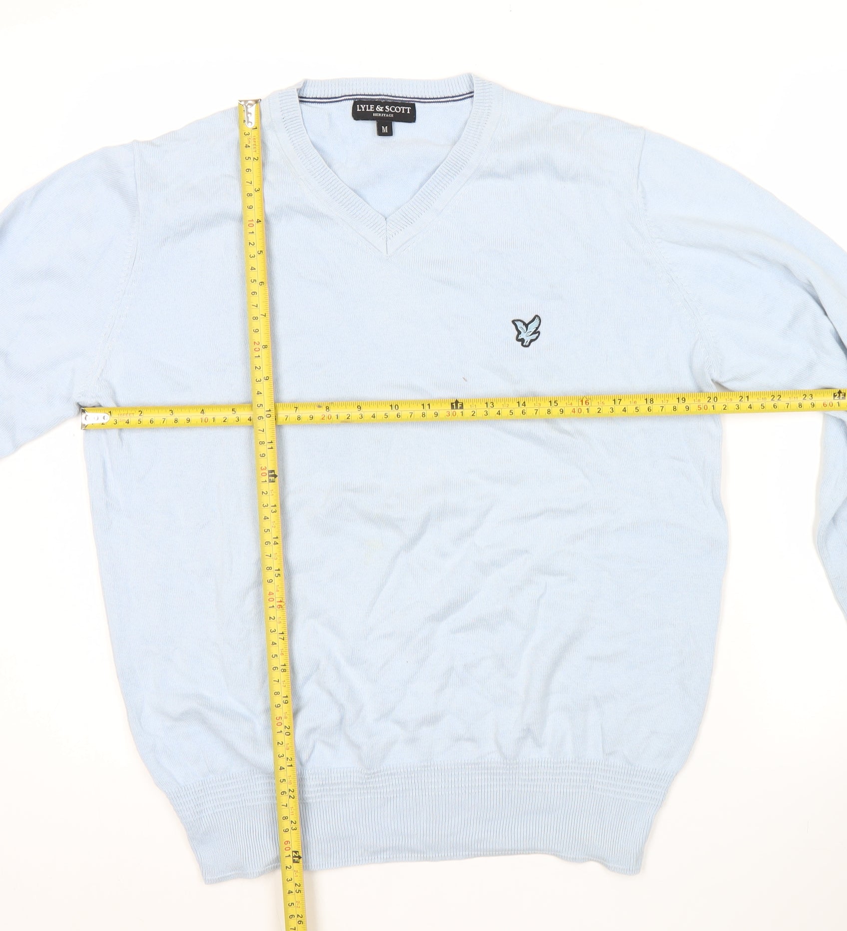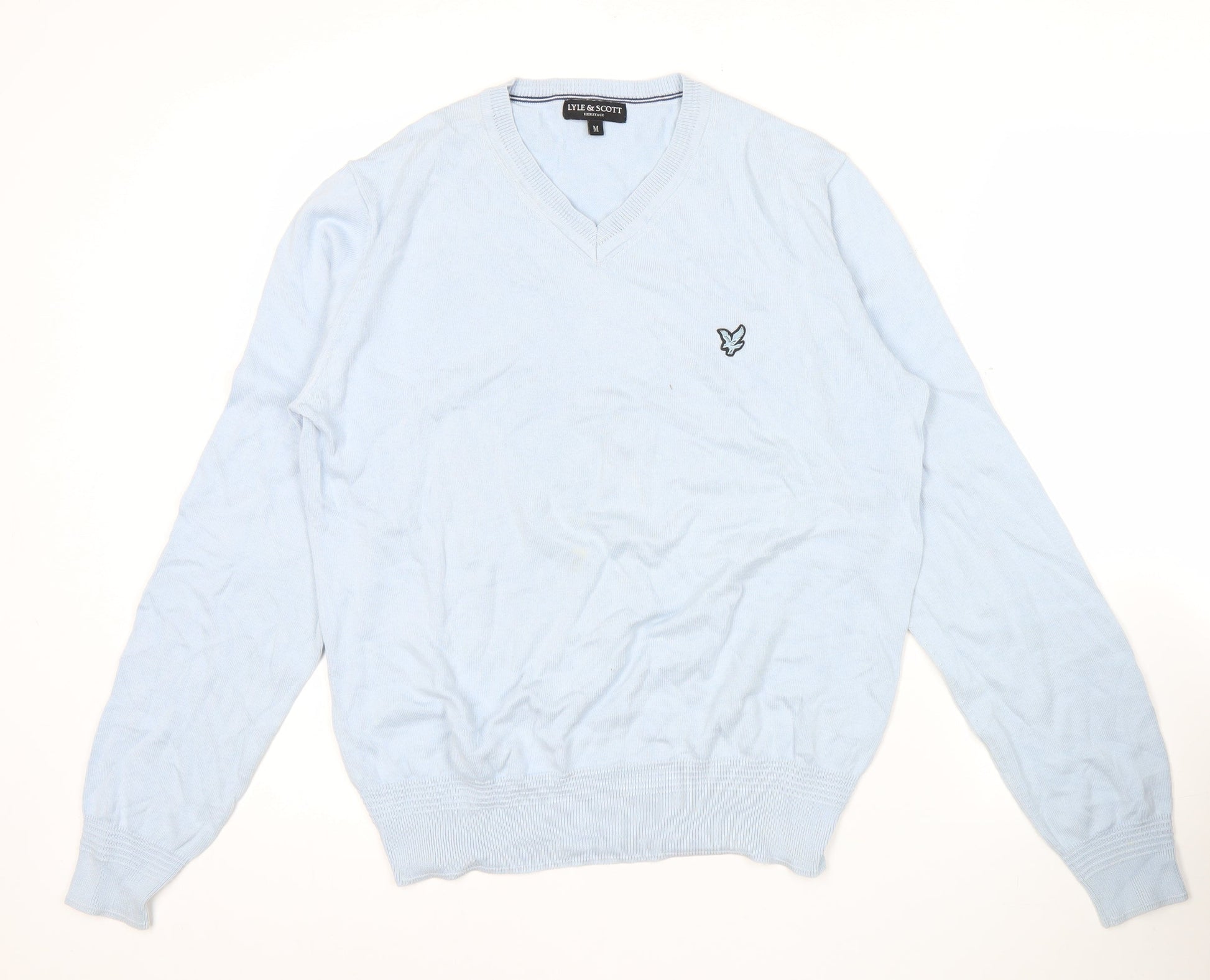 Lyle & Scott Men's Blue Cotton V-Neck Jumper Size M Long Sleeve