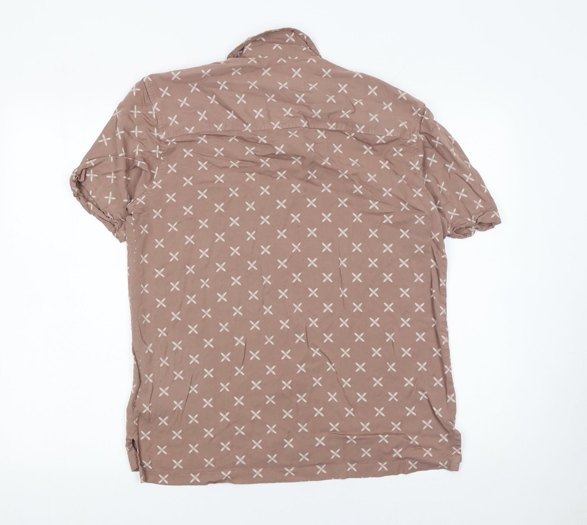 Lyle & Scott Men's Brown Geometric Short Sleeve Button-Up Shirt Size M