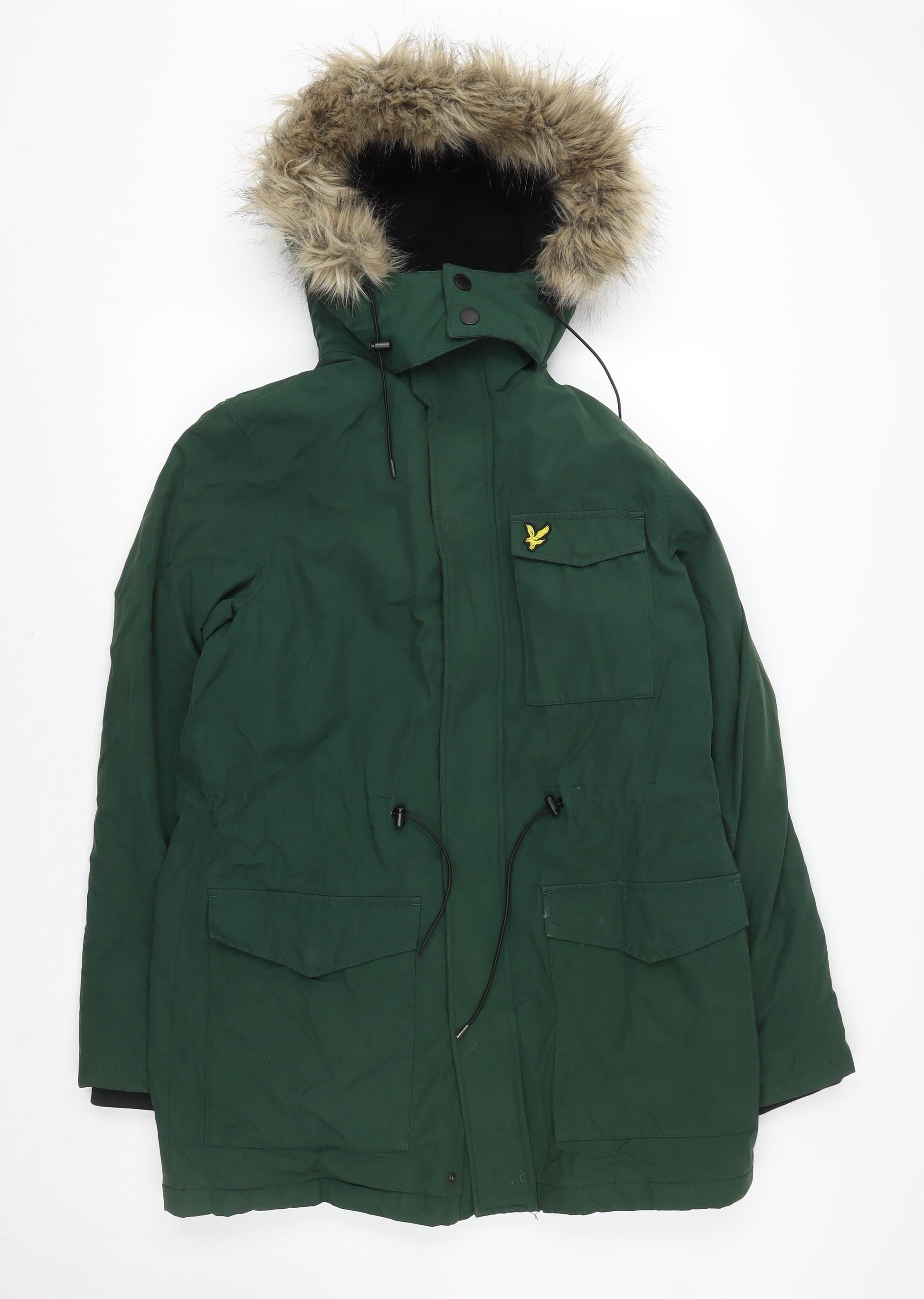Lyle & Scott Men's Green Parka Jacket Faux Fur Hood Size S
