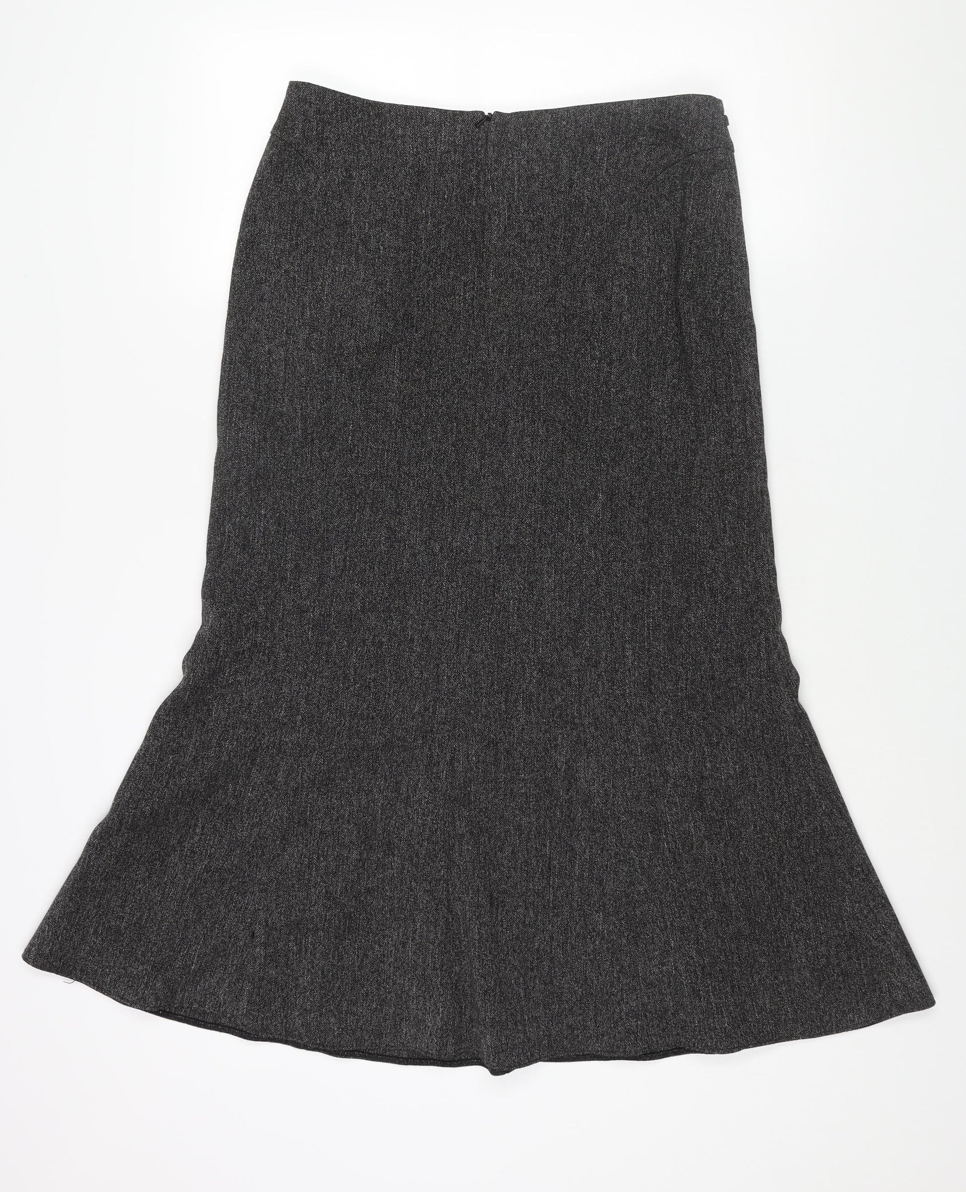M&Co Womens Black Polyester Trumpet Skirt Size 12 Zip - Belted