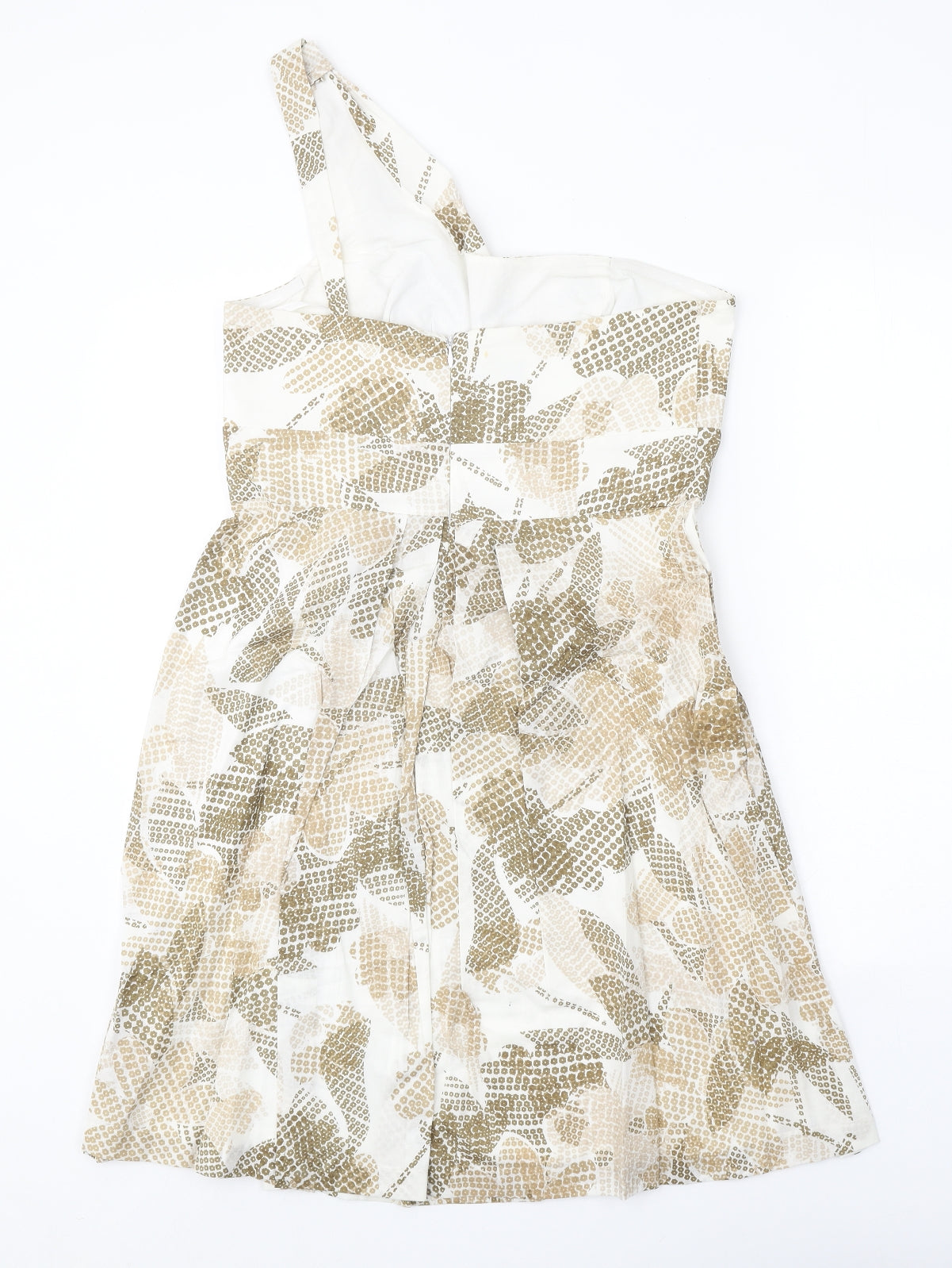Maggy Boutique Womens White Geometric 100% Cotton Fit & Flare Size 8 One Shoulder Zip