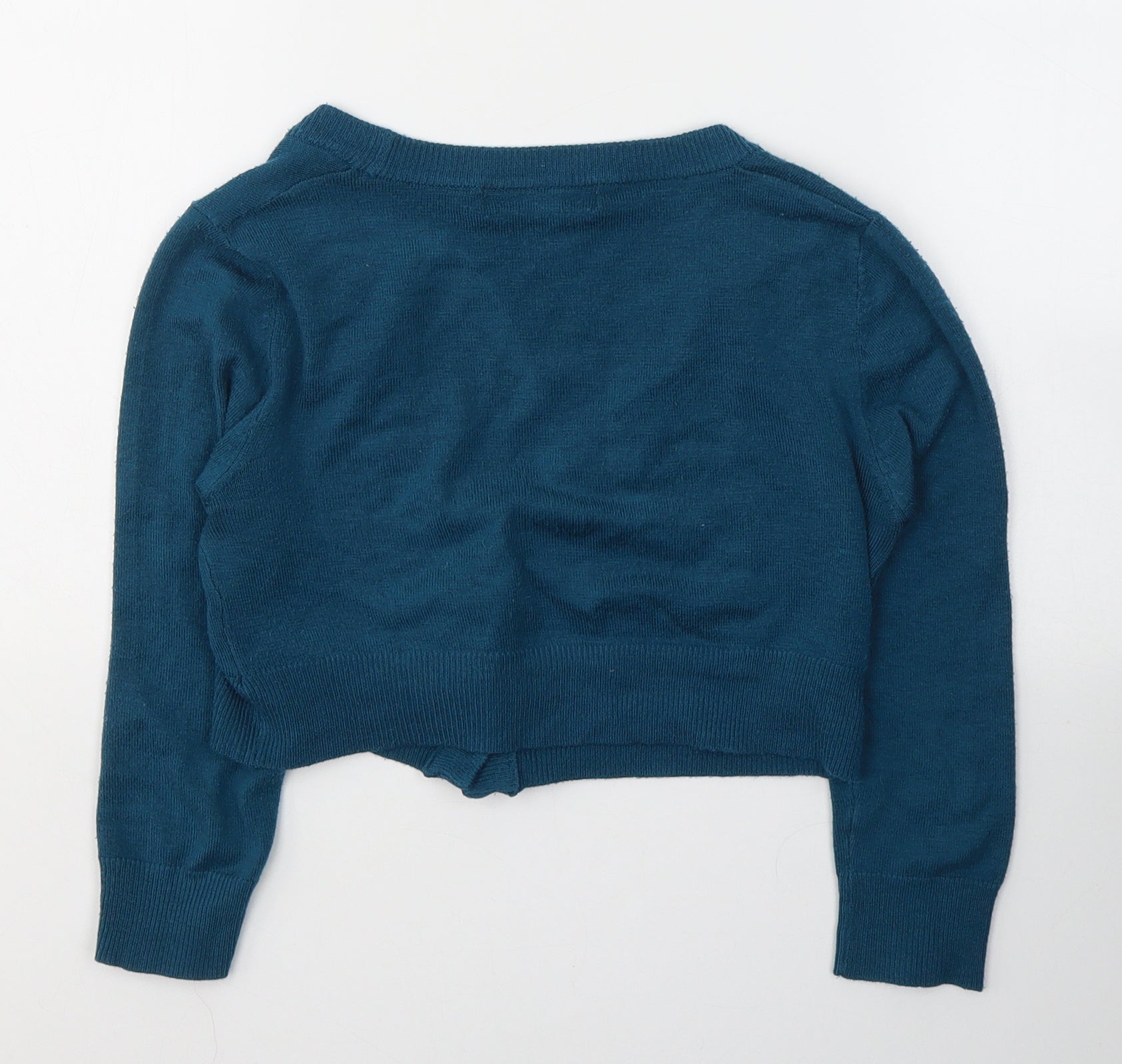 MAK Womens Blue Acrylic Cropped Button-Up Size S V-Neck
