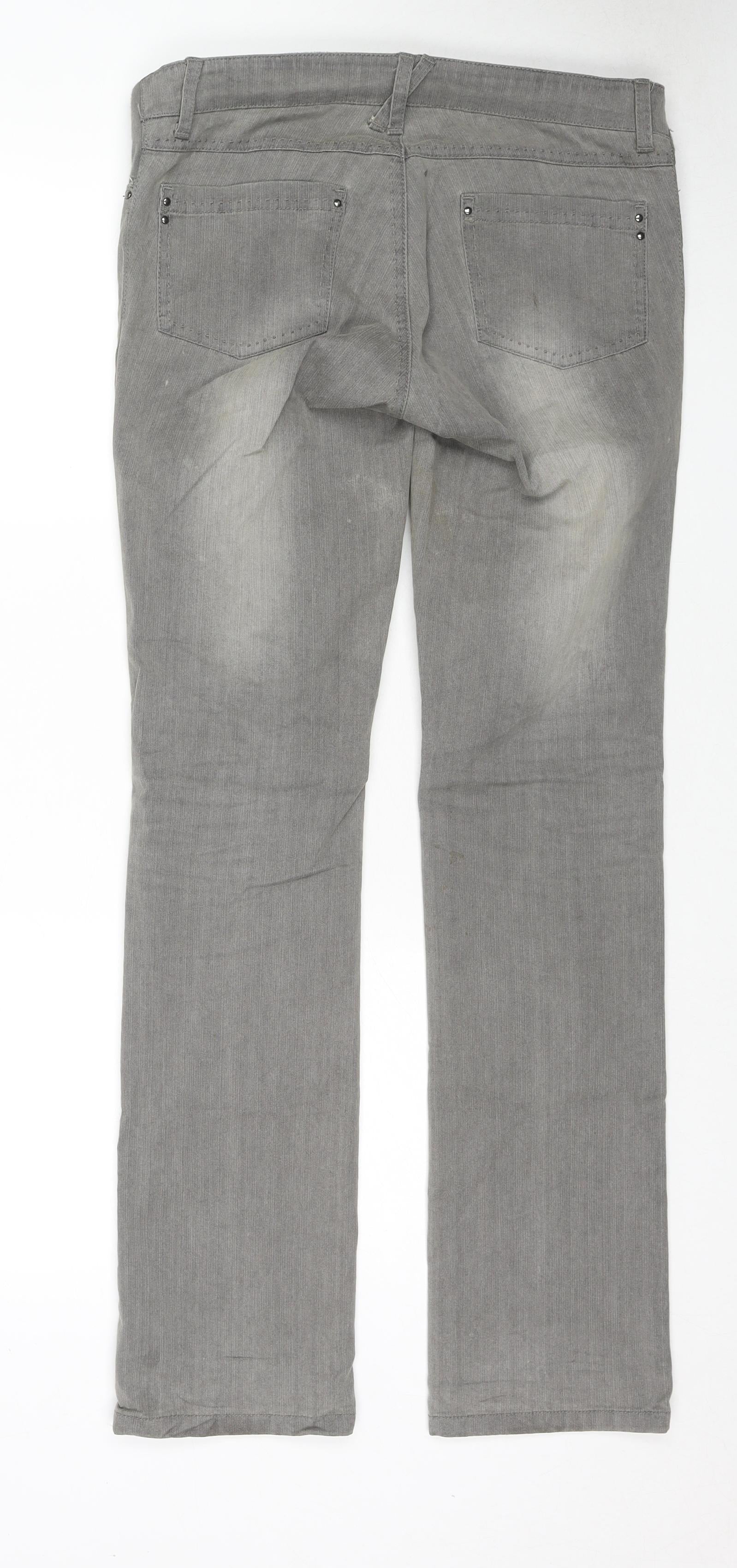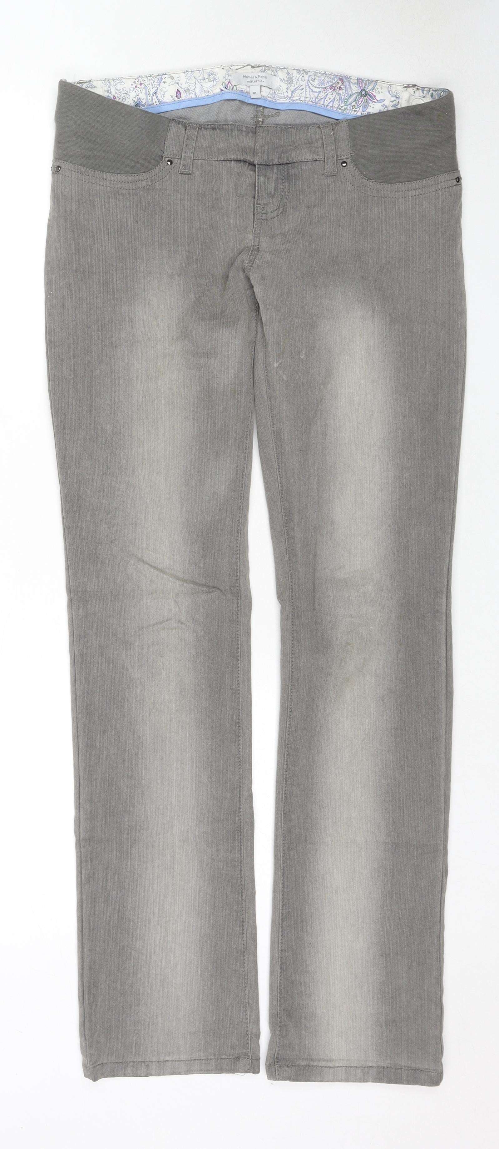 mamas & papas Womens Grey Cotton Straight Jeans Size 8 L31 in Regular Zip