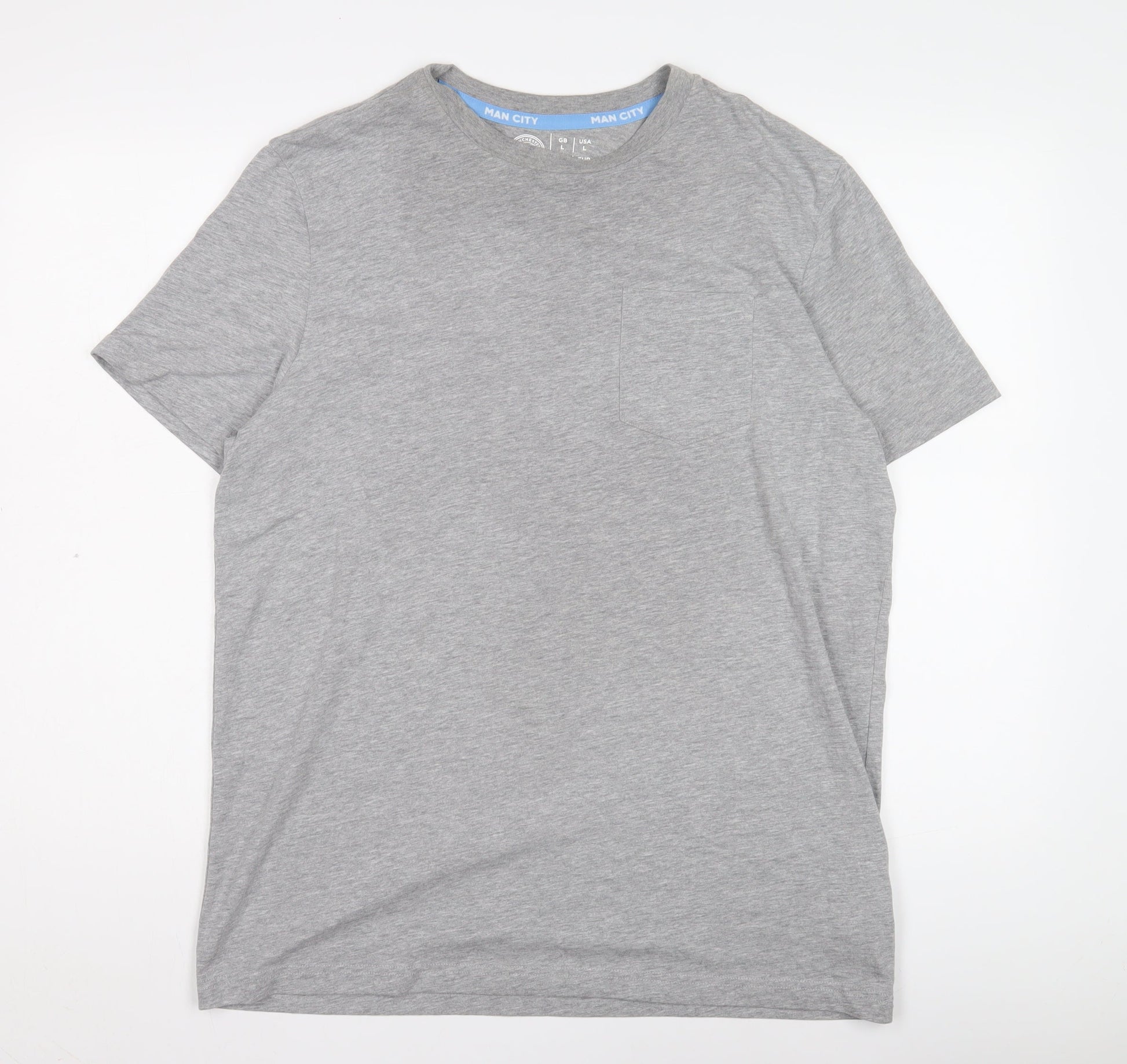 Manchester City Men’s Grey Logo T-Shirt, L, Crew Neck