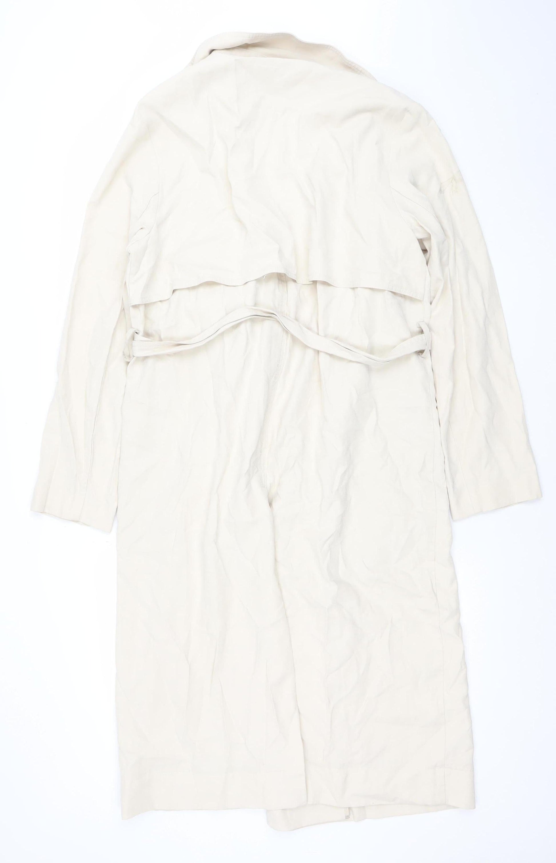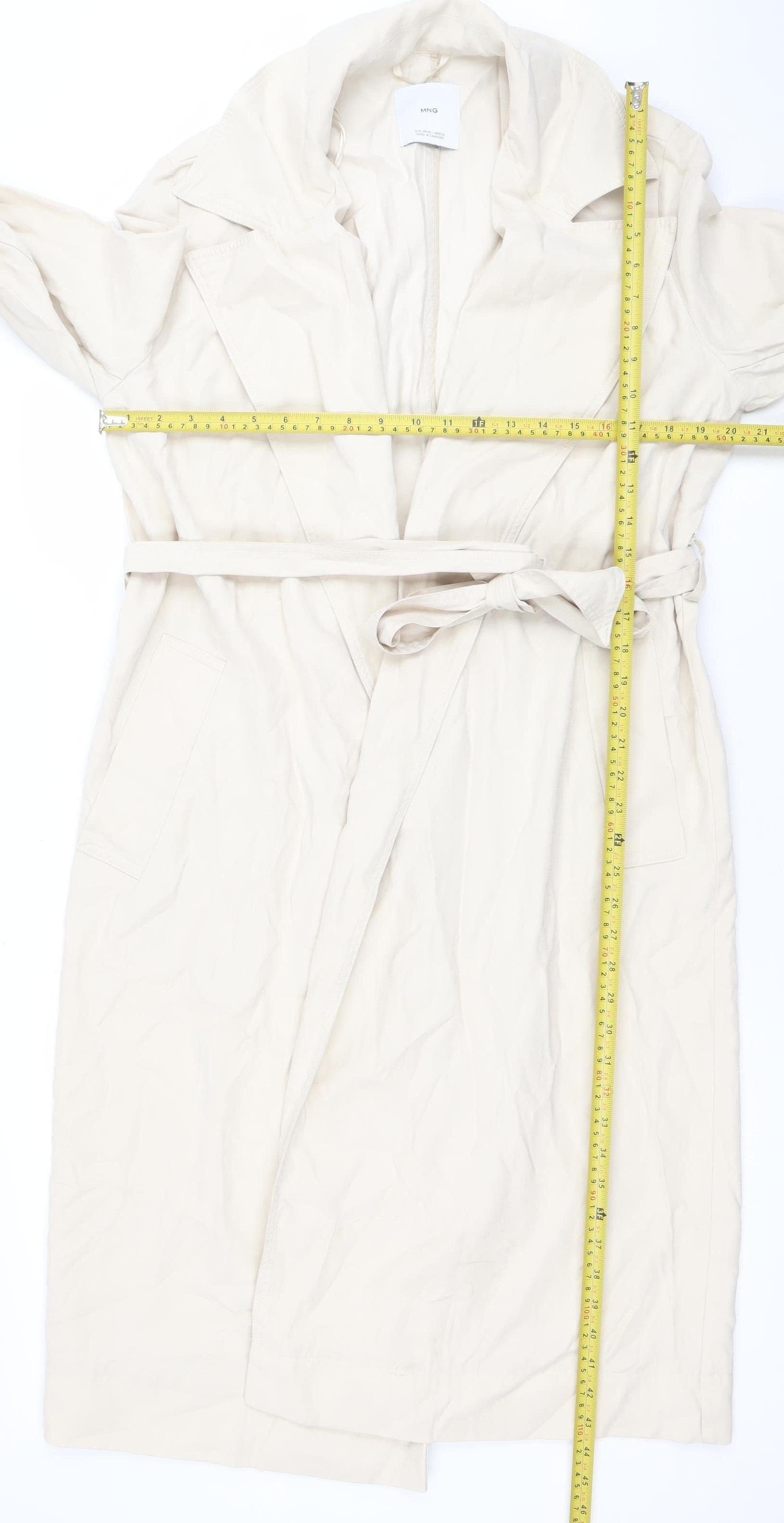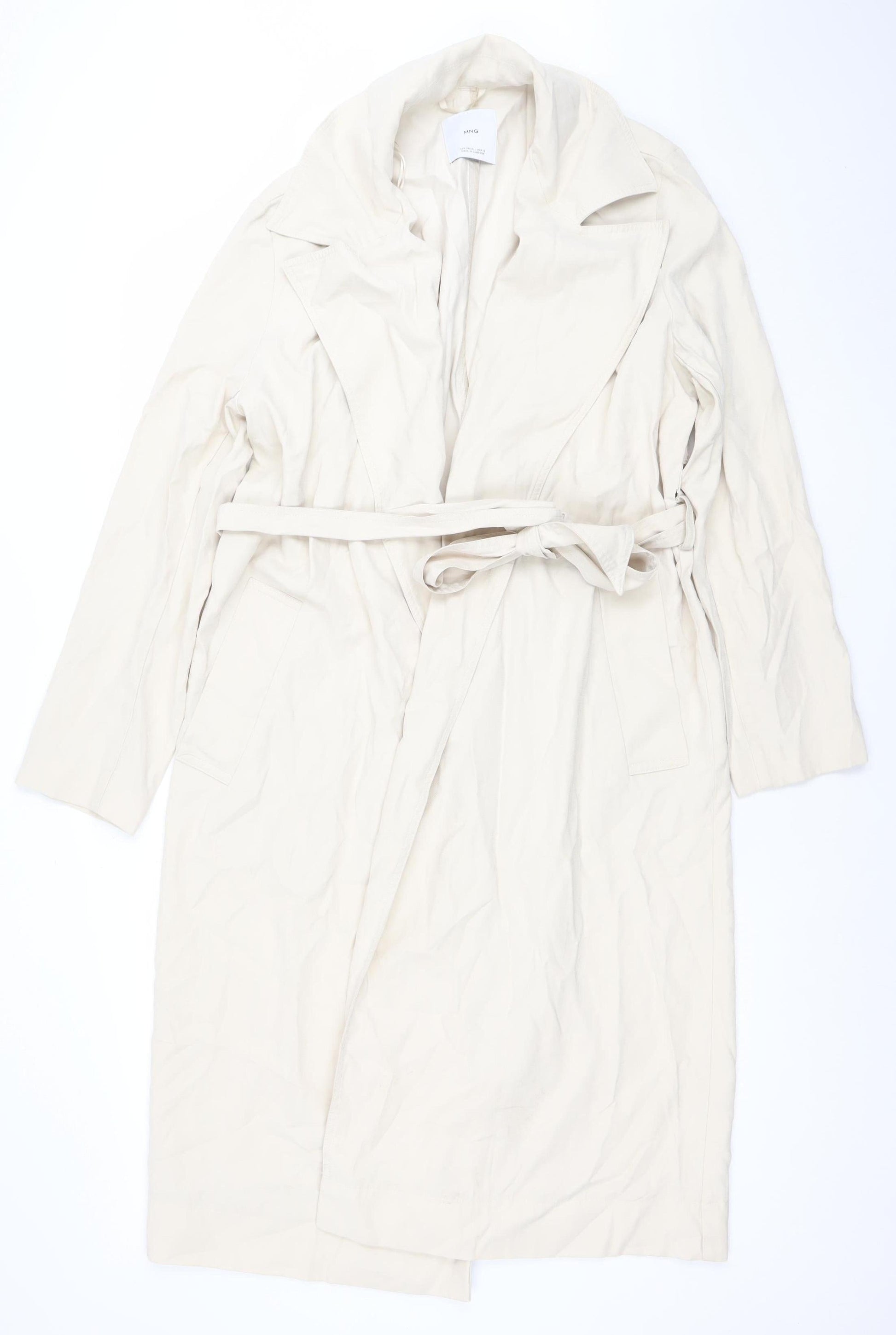 Mango Women Beige Long Belted Trench Coat XL Classic Cotton Blend