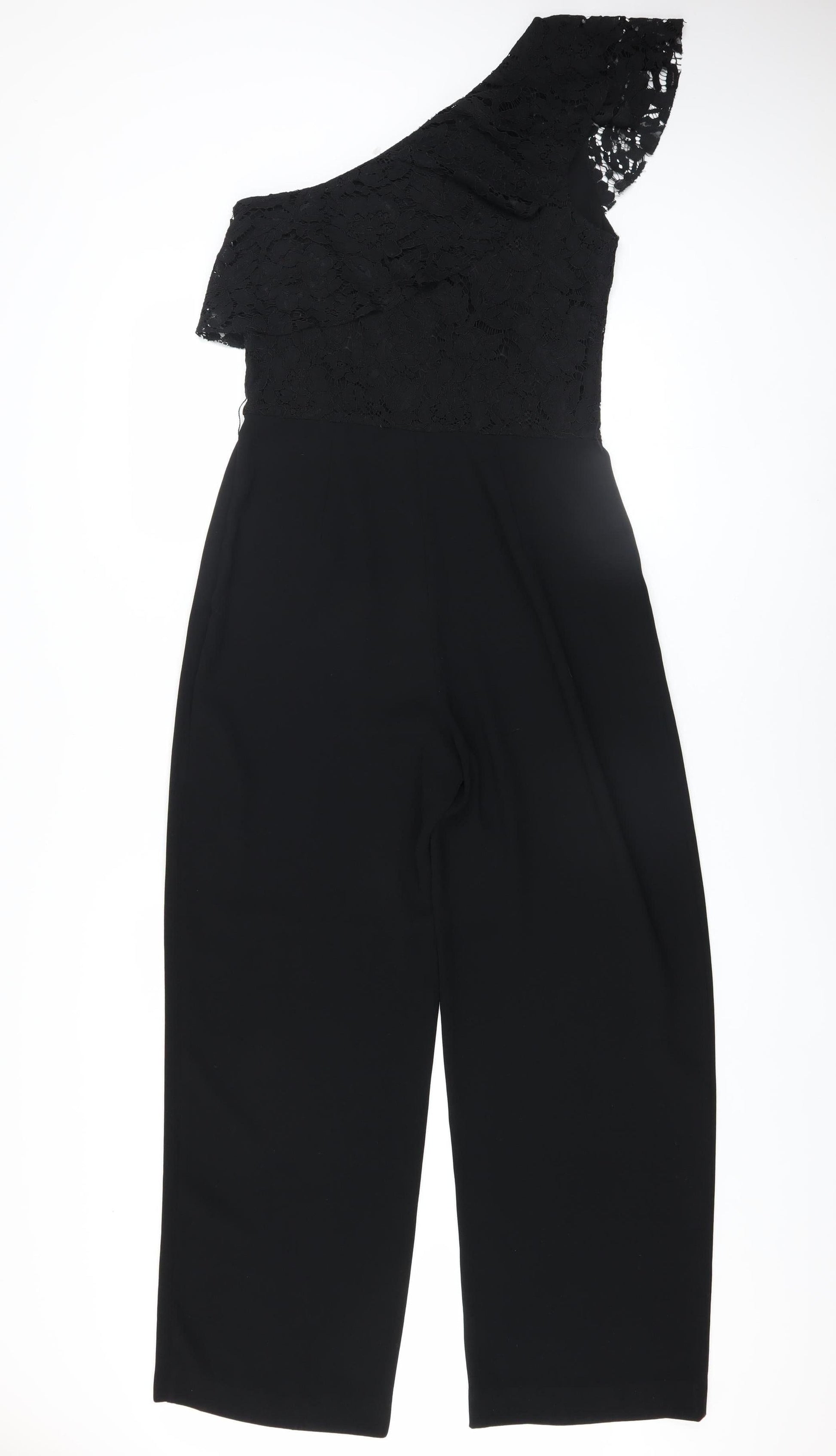 Mango Women’s Black One Shoulder Lace Jumpsuit Size 12