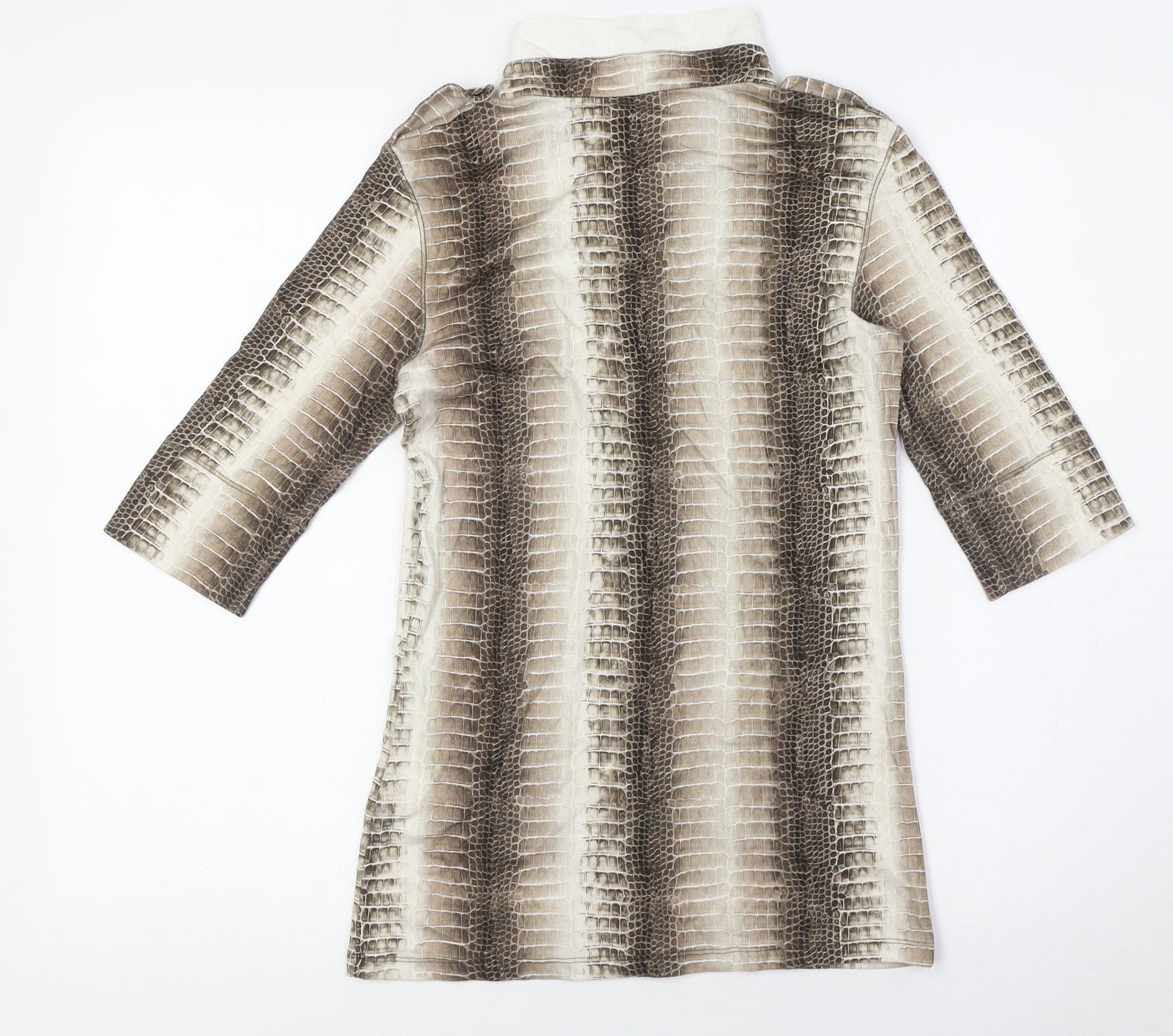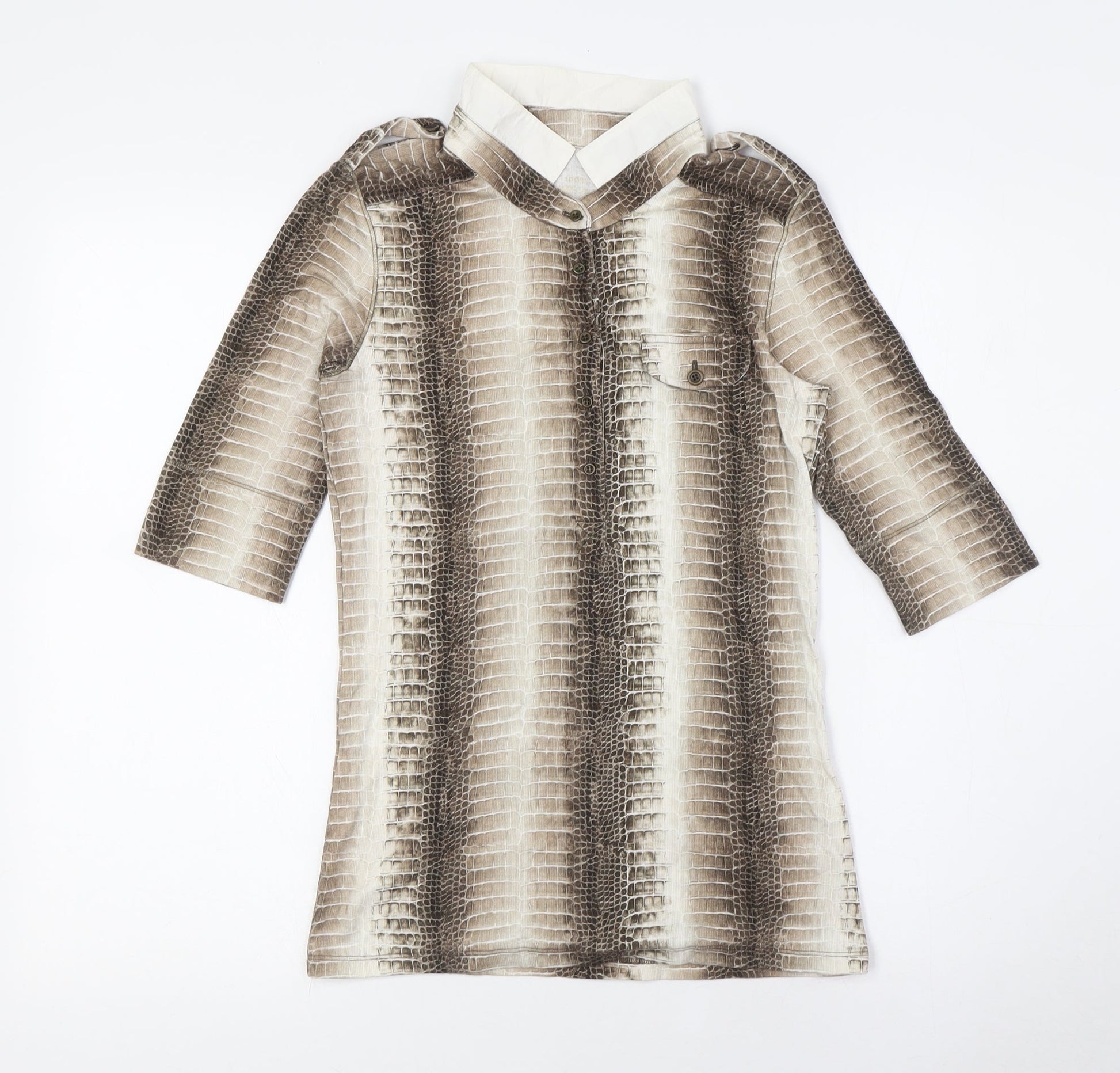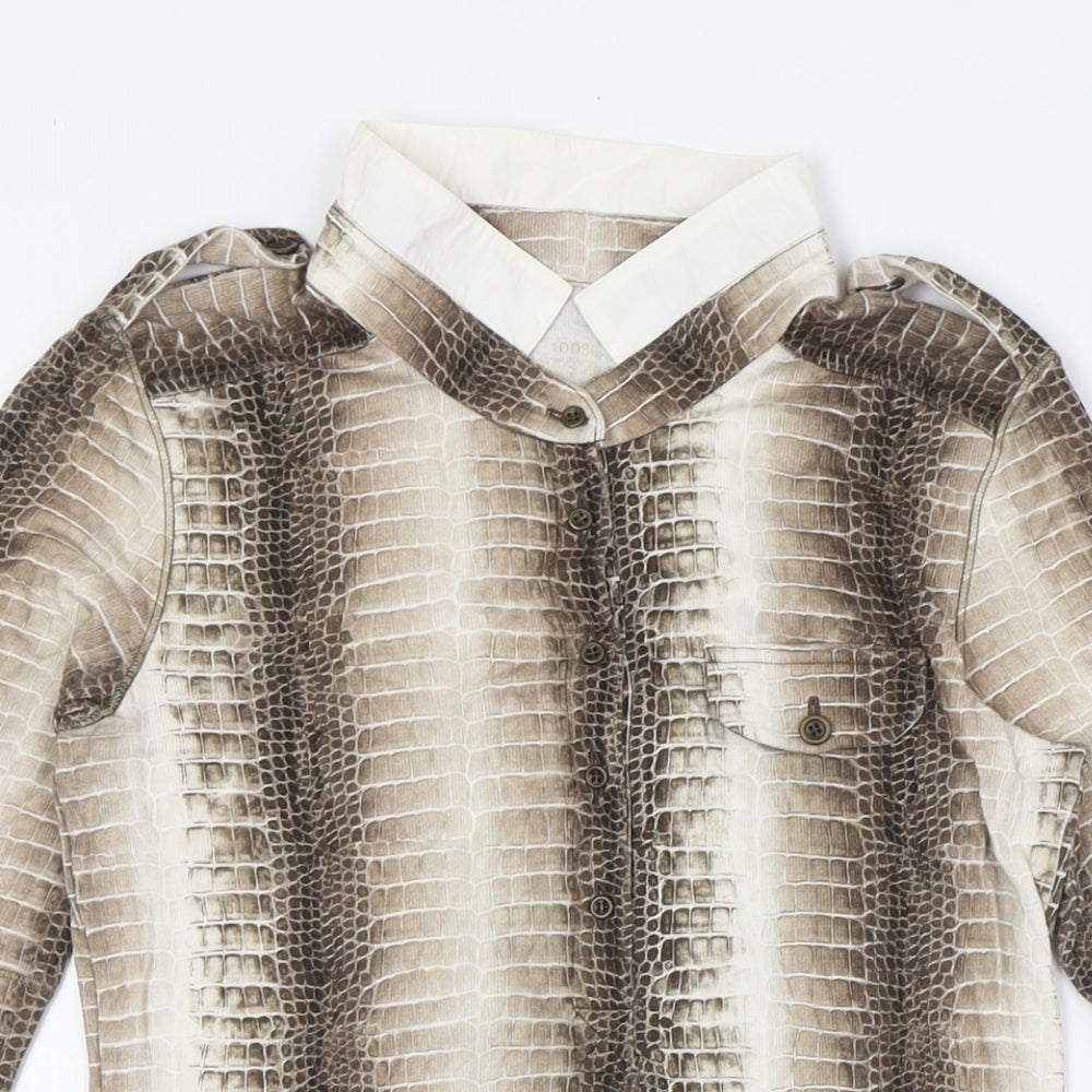 Marc Cain Womens Beige Animal Print Cotton Basic Button-Up Size XS Collared