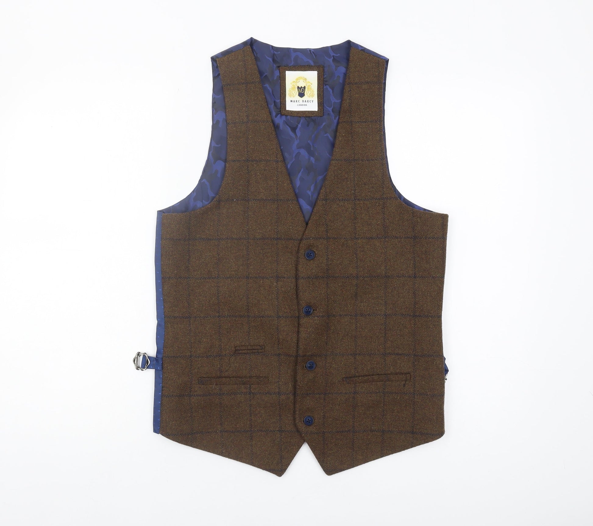 Marc Darcy Men's Brown Check Suit Waistcoat Size 36R