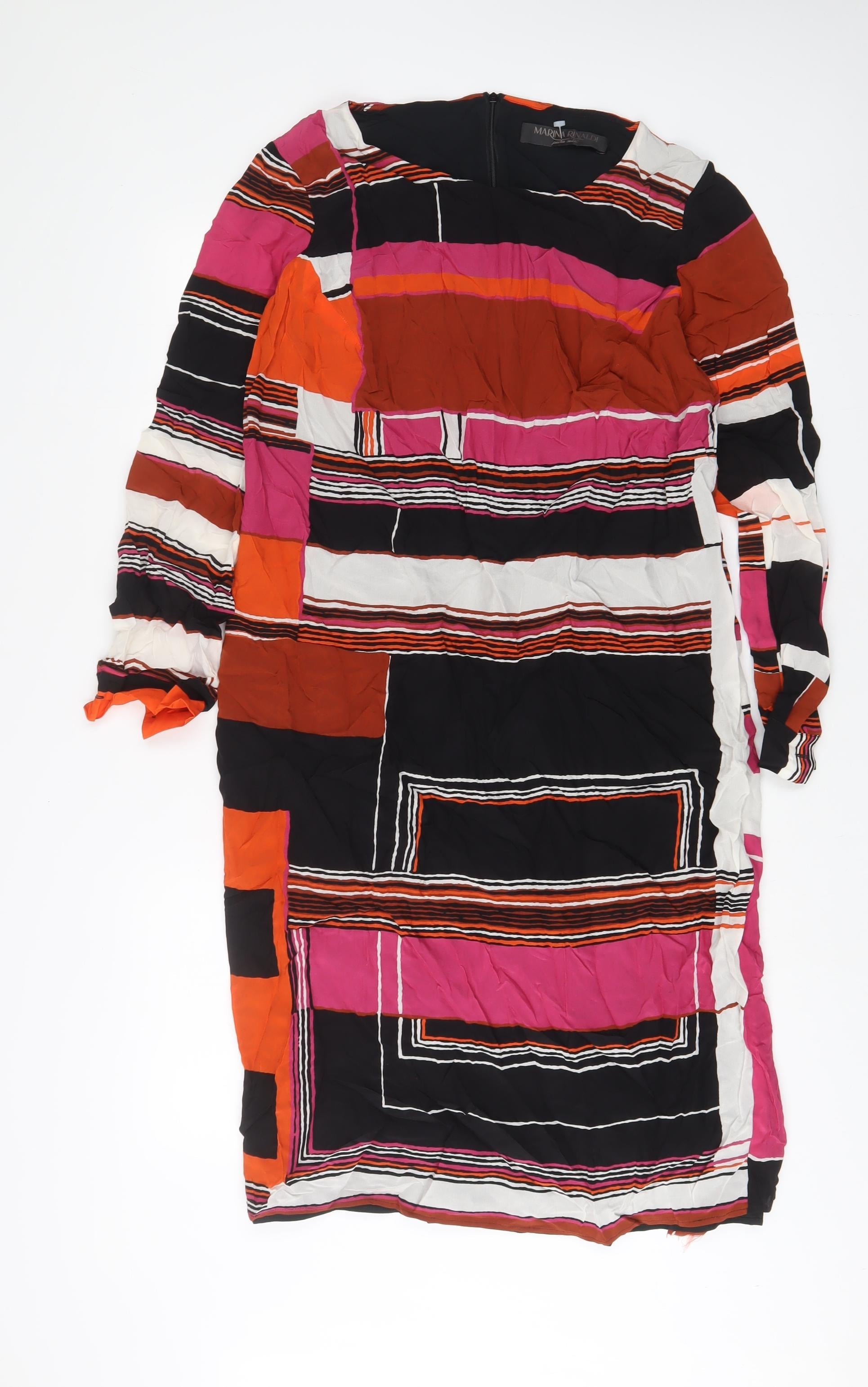 Marina Rinaldi Womens Multicoloured Striped Viscose Sheath Size 14 Boat Neck Zip