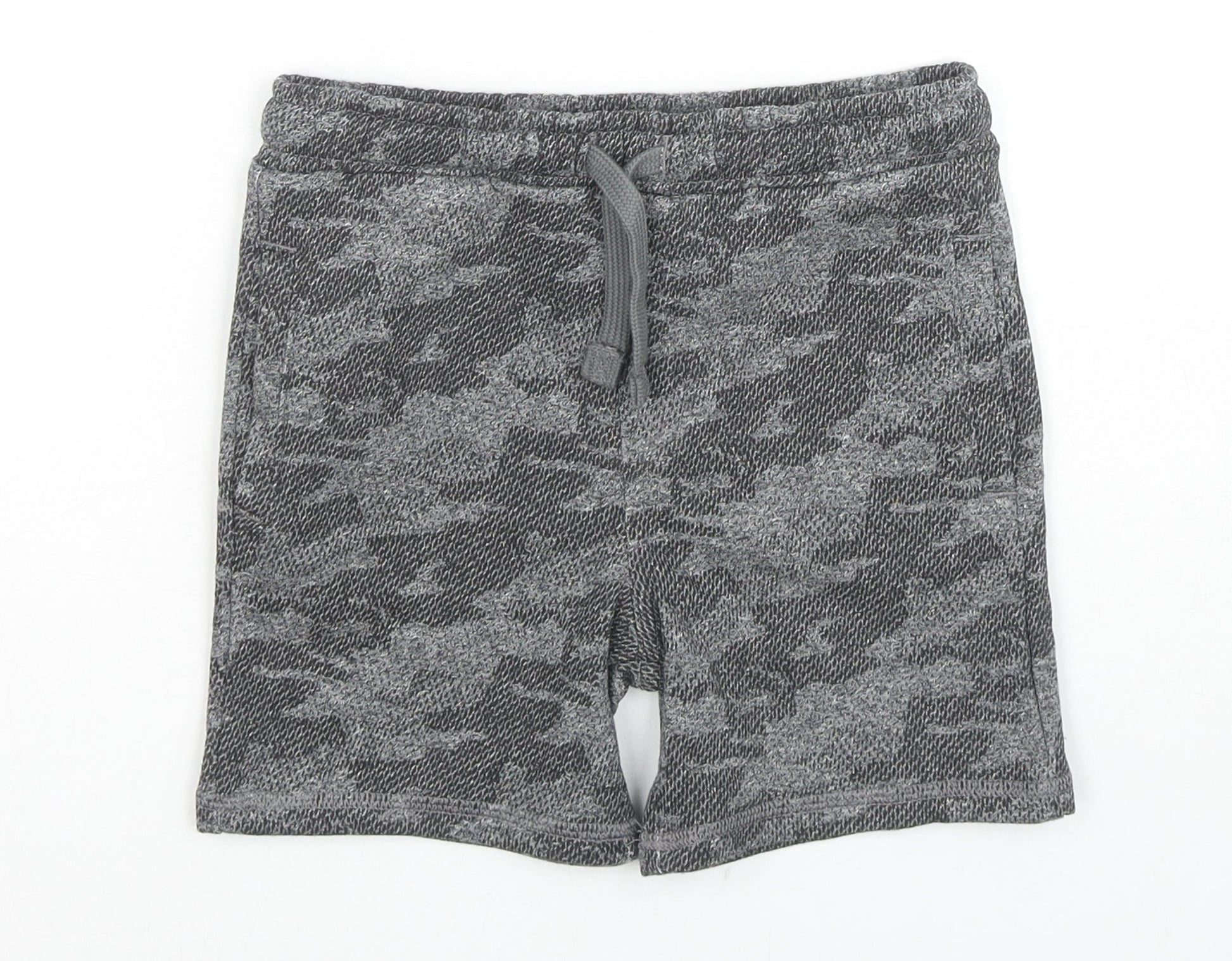 Marks and Spencer Boys Grey Camouflage Cotton Sweat Shorts Size 4-5 Years Regular Drawstring