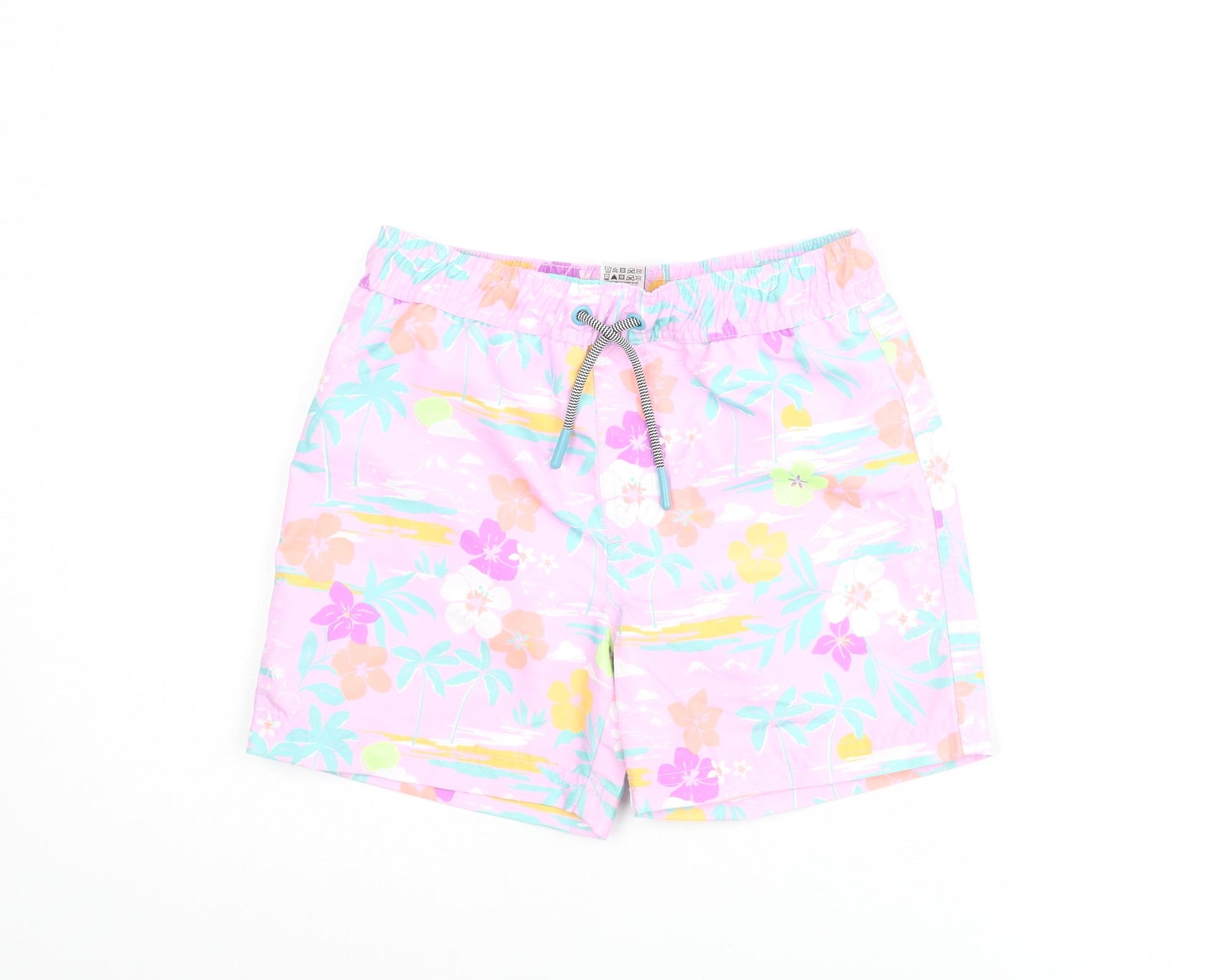 Marks and Spencer Boys Multicoloured Geometric Polyester Sweat Shorts Size 6-7 Years Regular Drawstring - Palm Tree Flower Swim Shorts