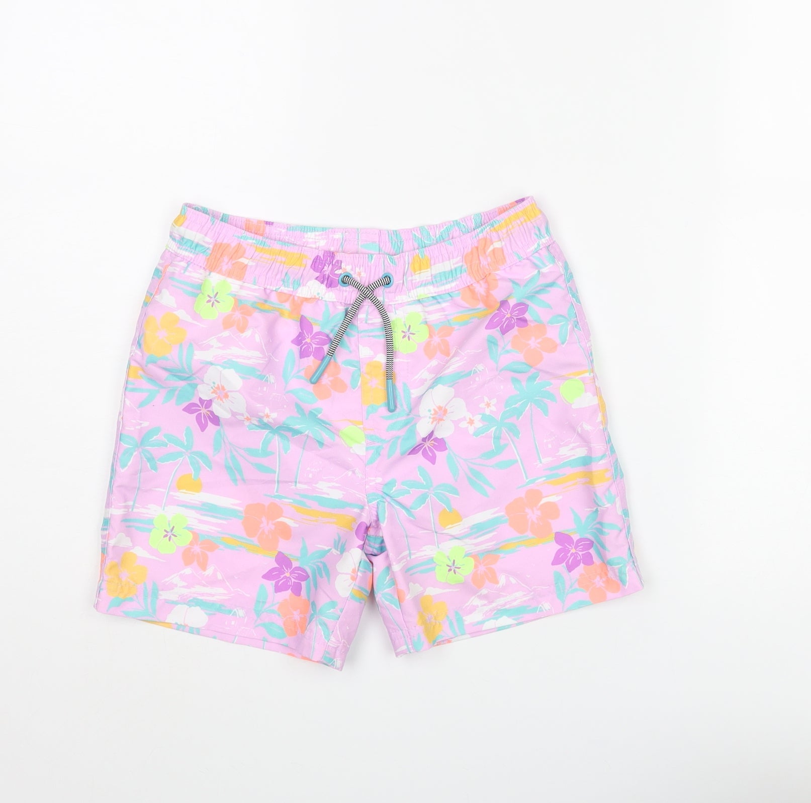 Marks and Spencer Boys Multicoloured Geometric Polyester Sweat Shorts Size 7-8 Years Regular Drawstring - Palm Tree Flower Swim Shorts