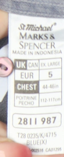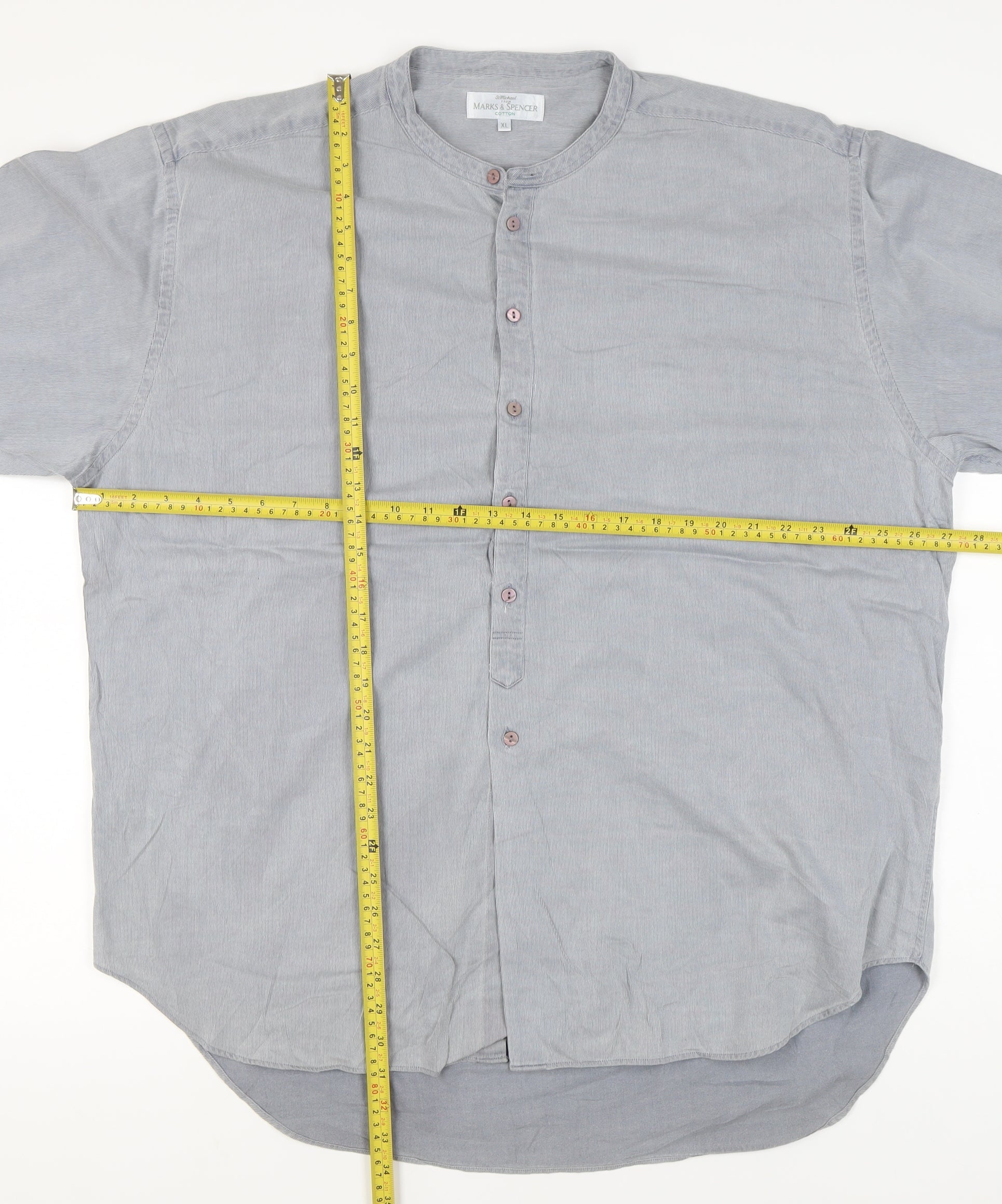 Marks and Spencer Men’s XL 44-46" Blue Cotton Long Sleeve Band Collar Shirt