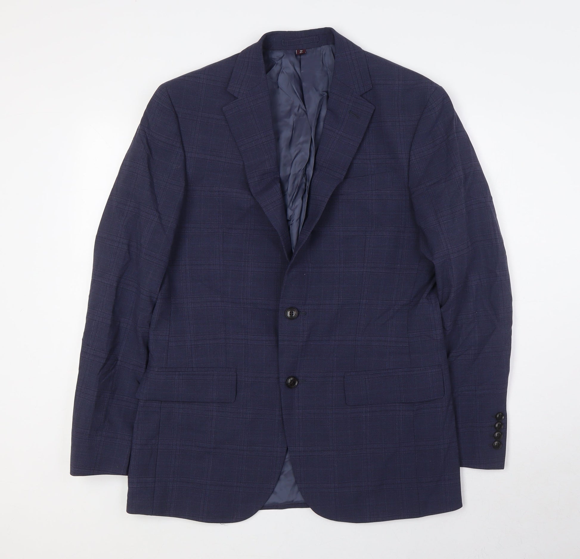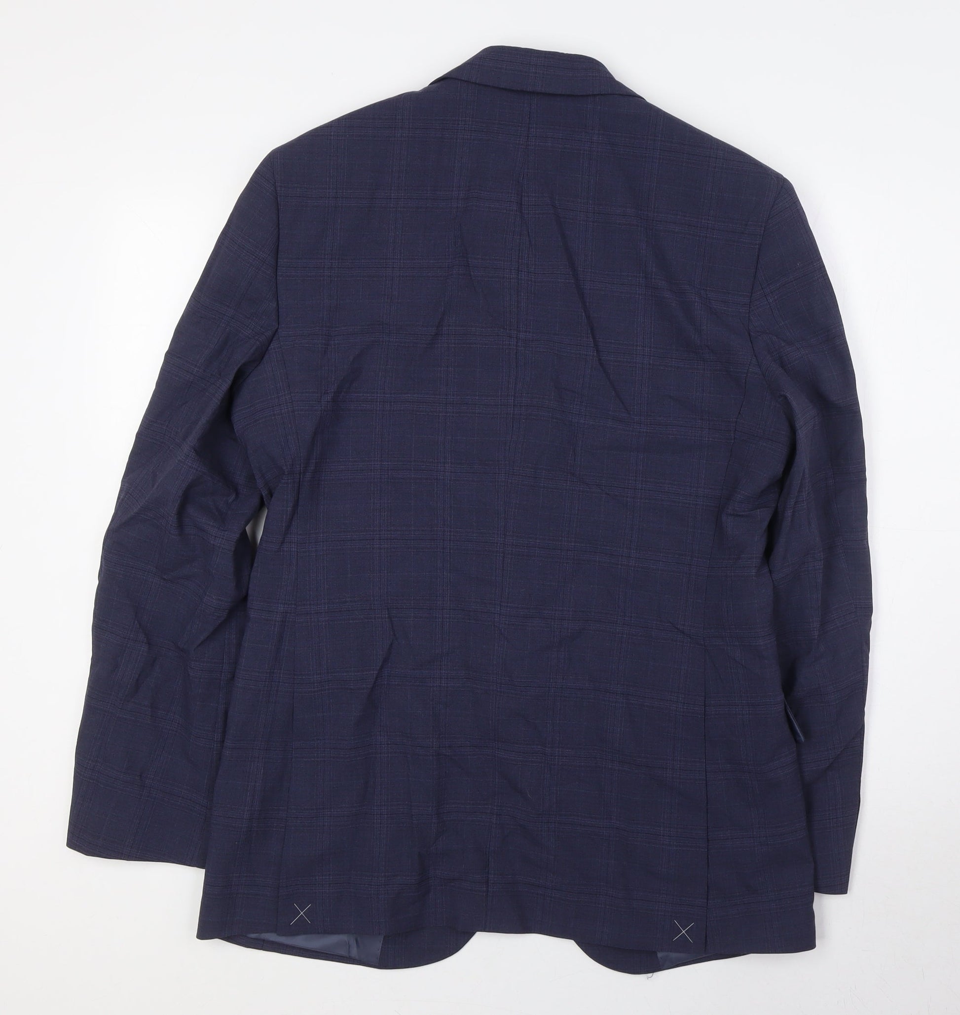 Marks and Spencer Mens Blue Check Wool Jacket Suit Jacket Size 38 Regular