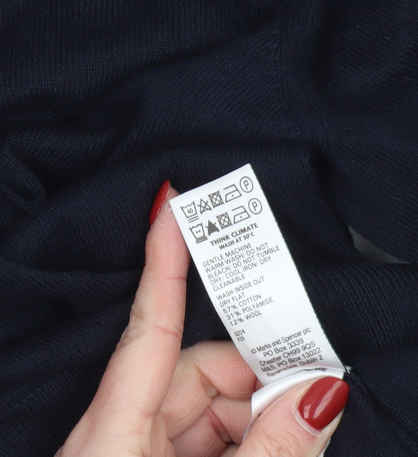 Marks and Spencer Mens Blue XL Roll Neck Wool Blend Jumper