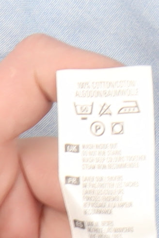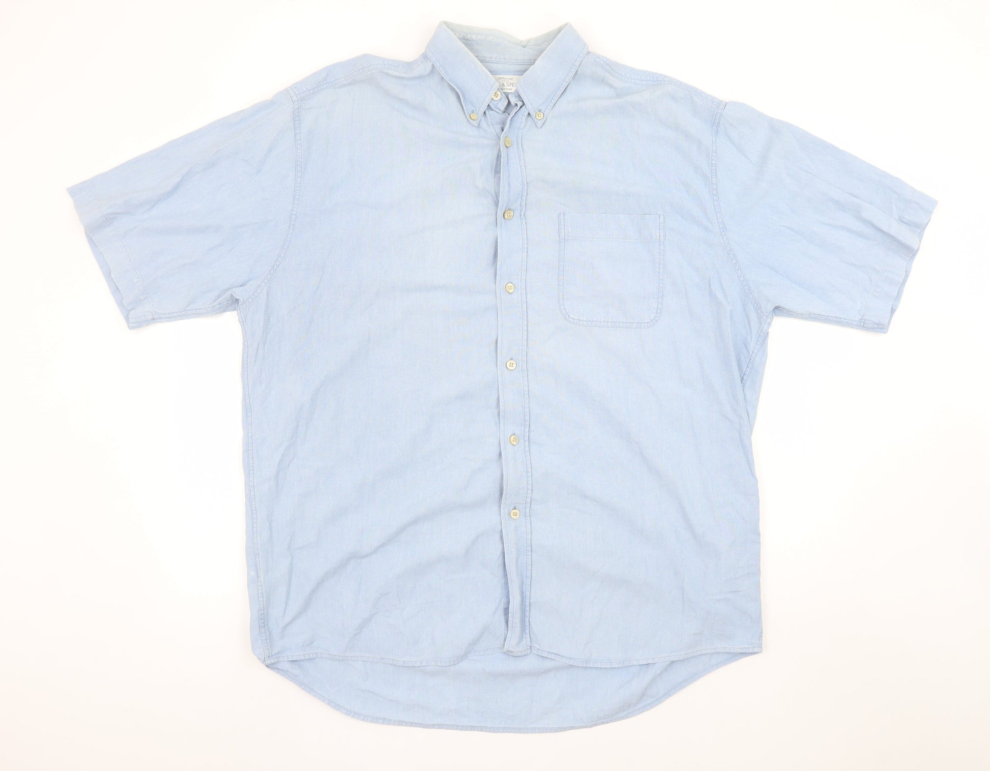 Marks and Spencer St Michael Men's Blue Short Sleeve Button-Up Shirt L