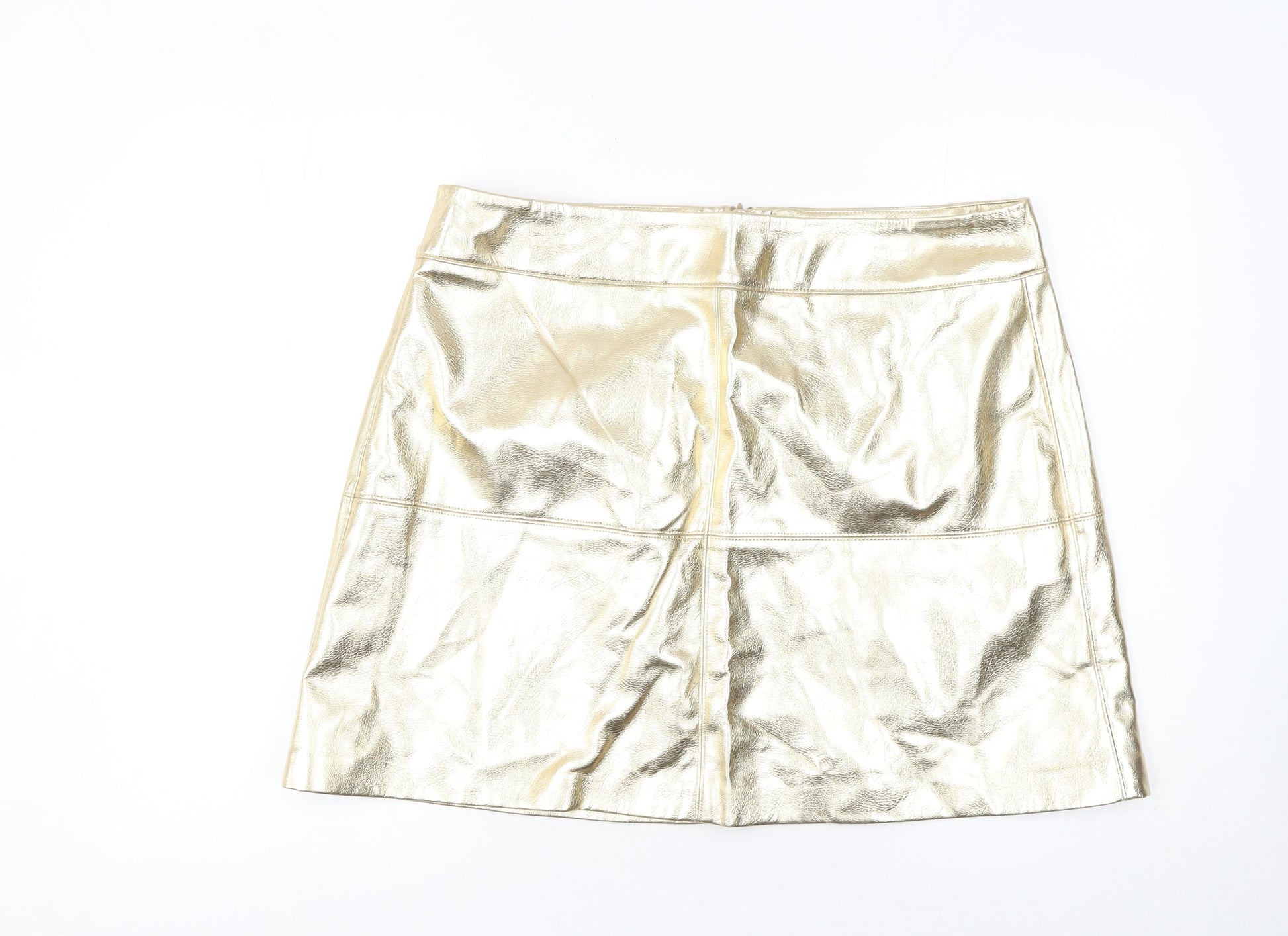 Marks and Spencer Women Gold A-Line Short Skirt Size 18 Party Wear