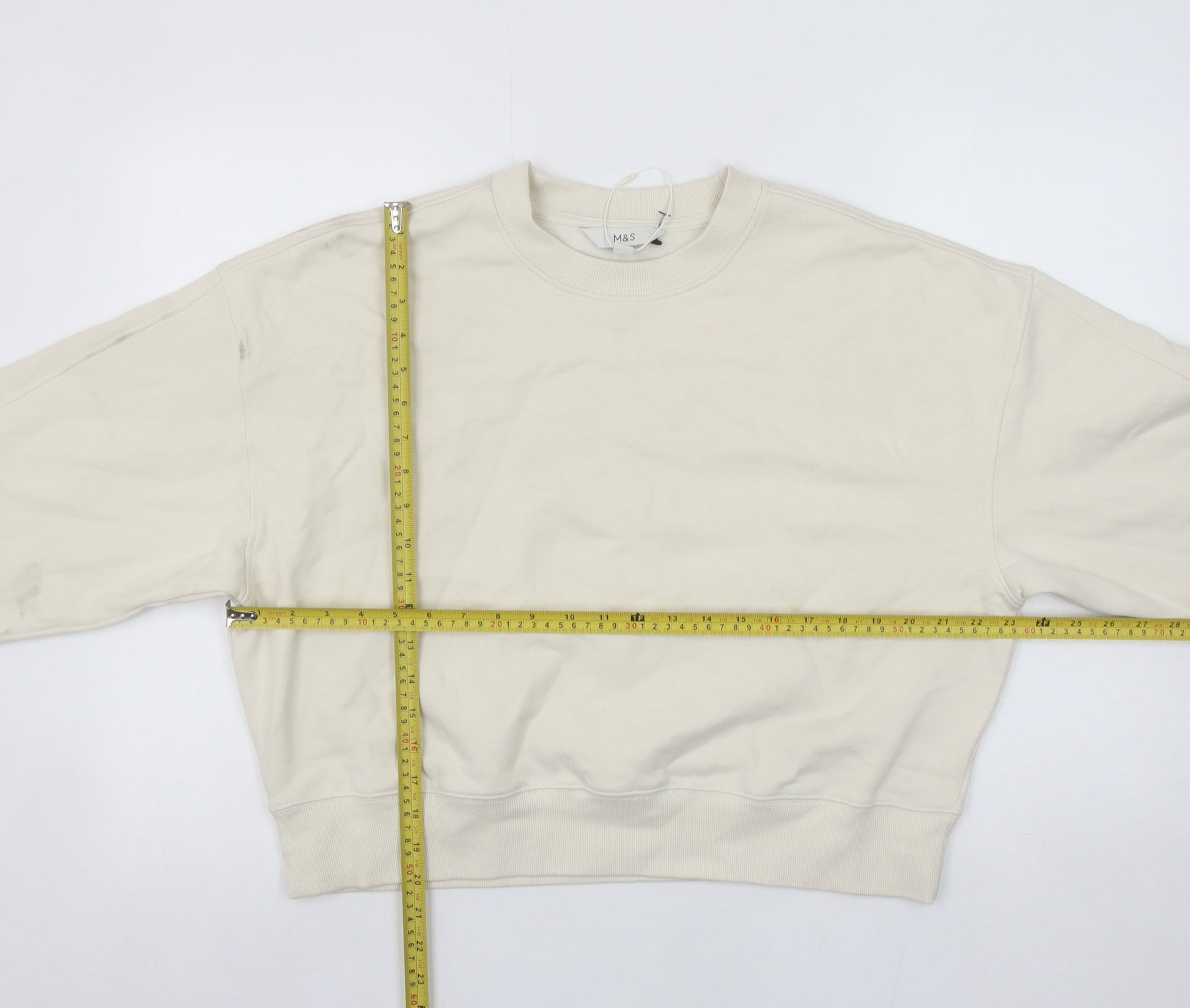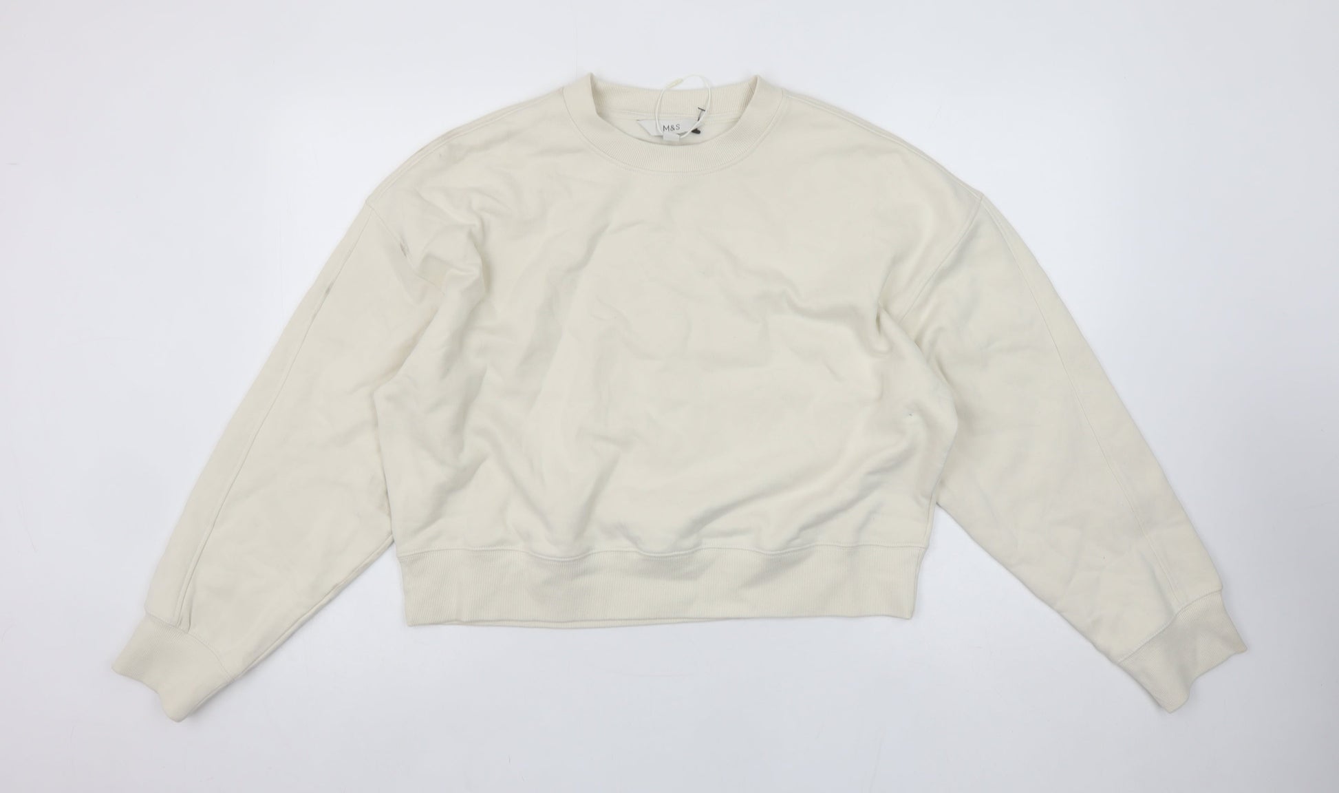 Marks and Spencer Women Ivory Cotton Crew Neck Pullover Sweatshirt M