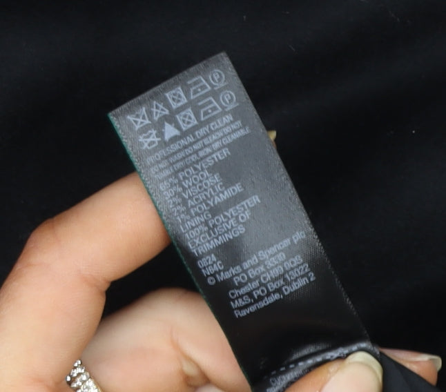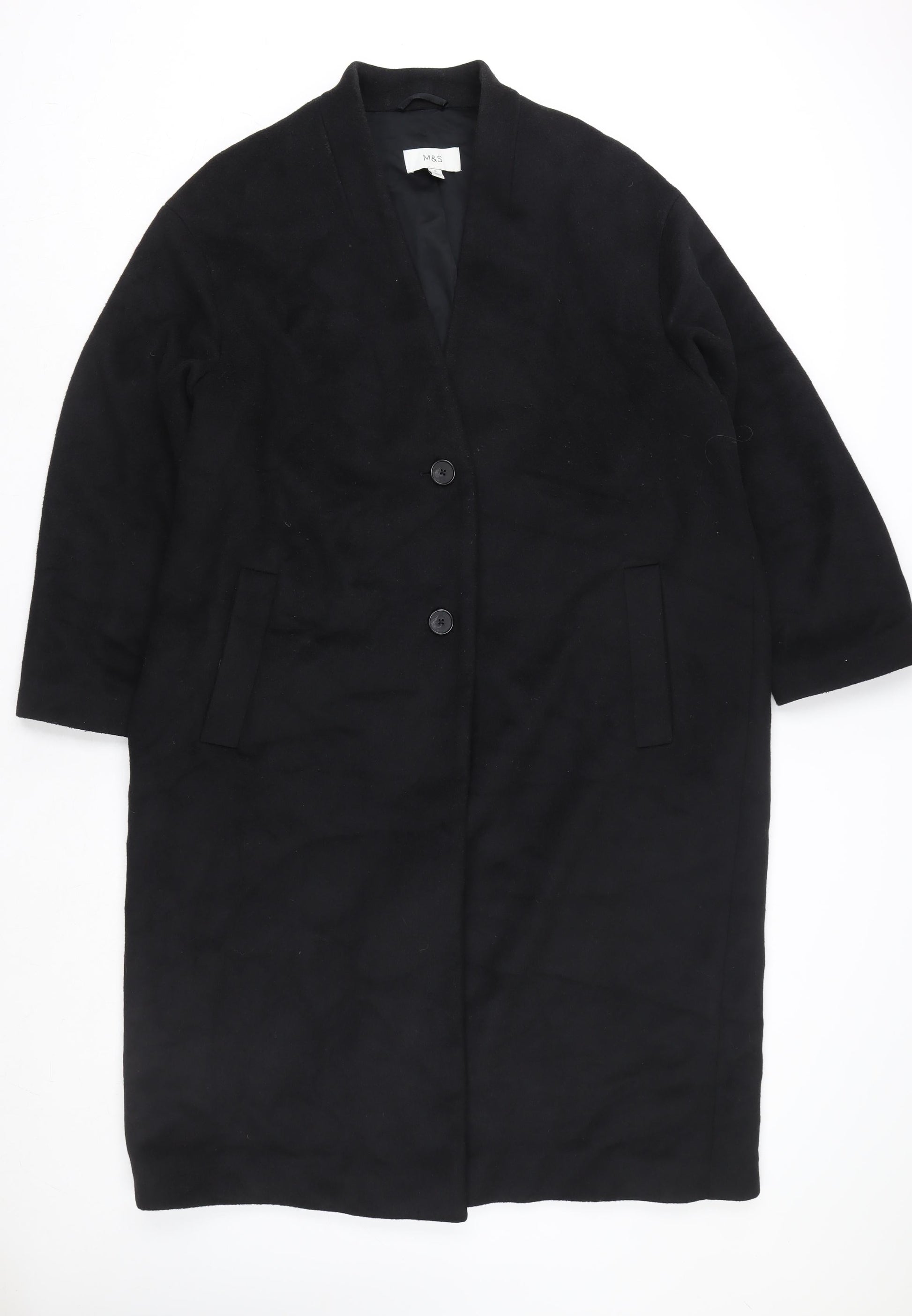 Marks and Spencer Women’s Black Wool Blend Long Overcoat Size 16