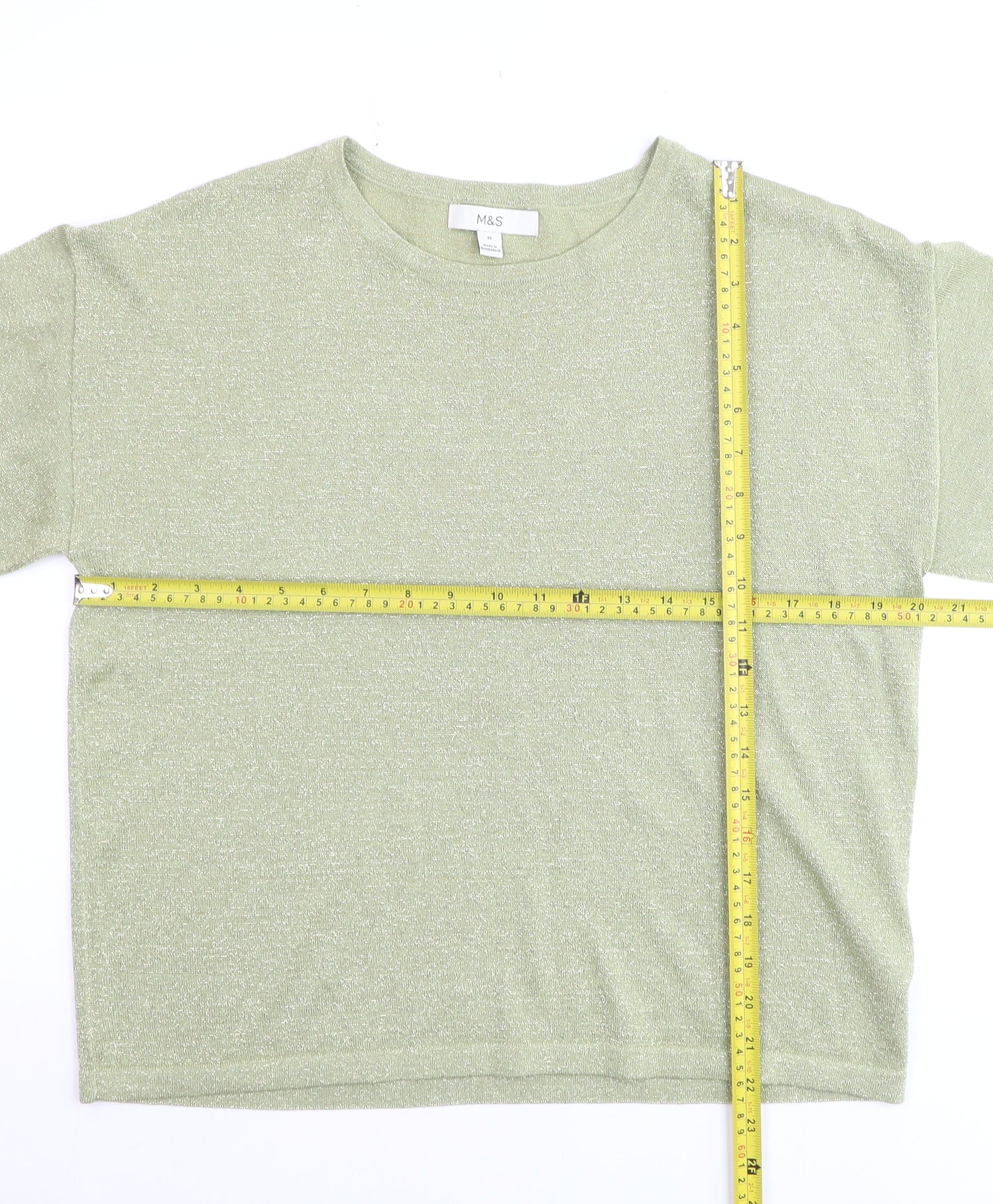 Marks and Spencer Women’s Light Green Glitter Knit T-Shirt Medium