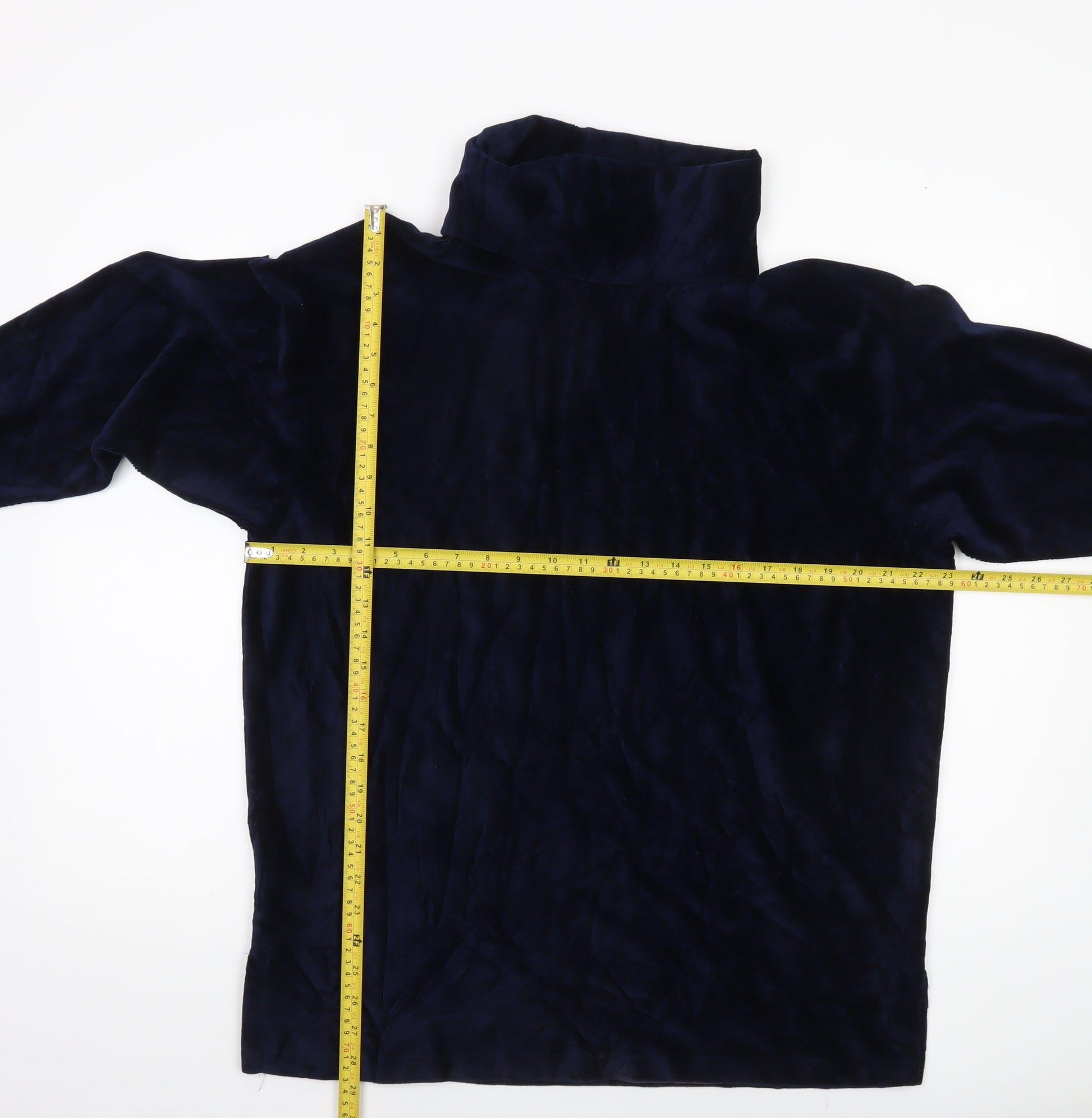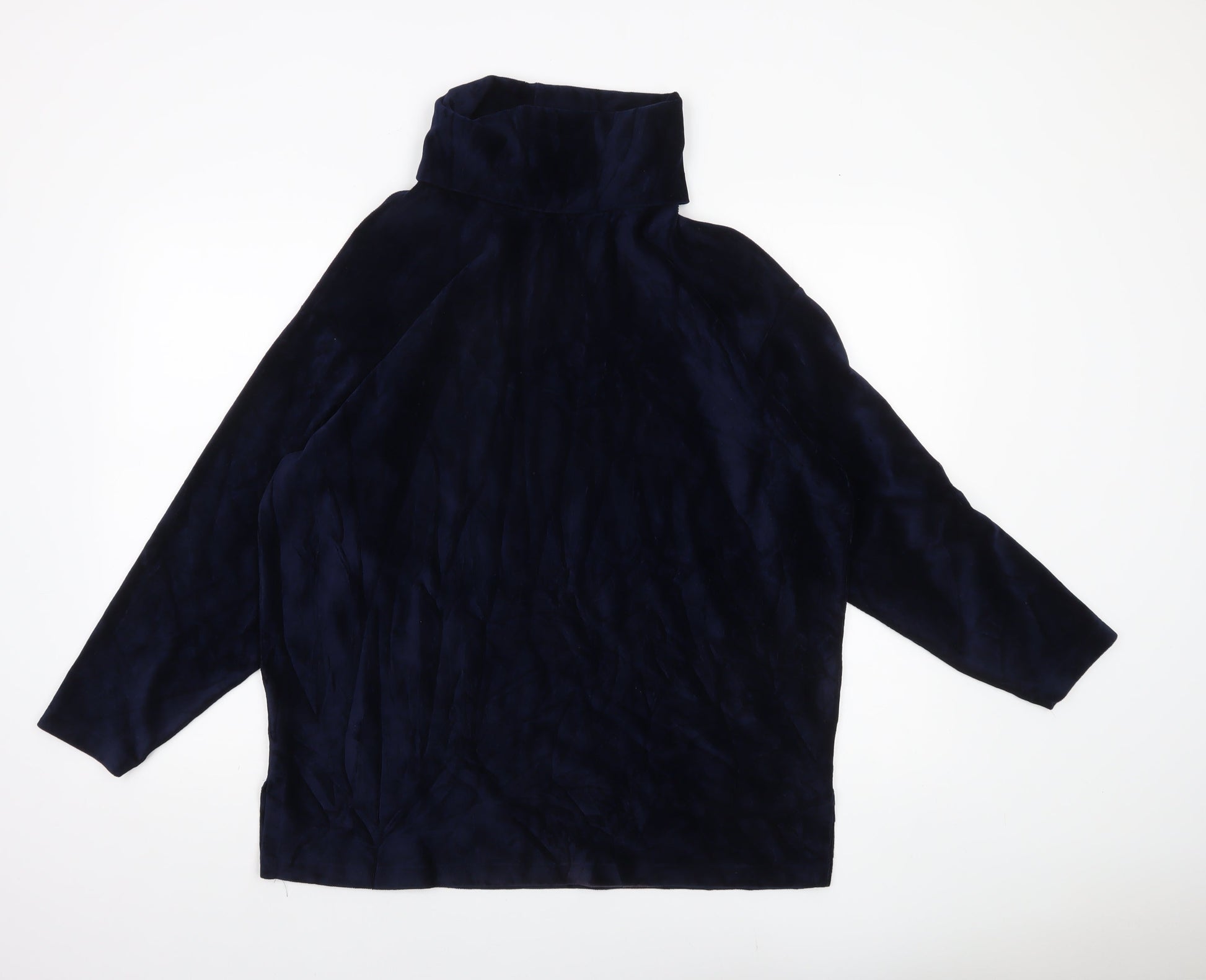 Marks and Spencer Women’s Navy Blue Roll Neck Blouse UK 12 Cotton Blend