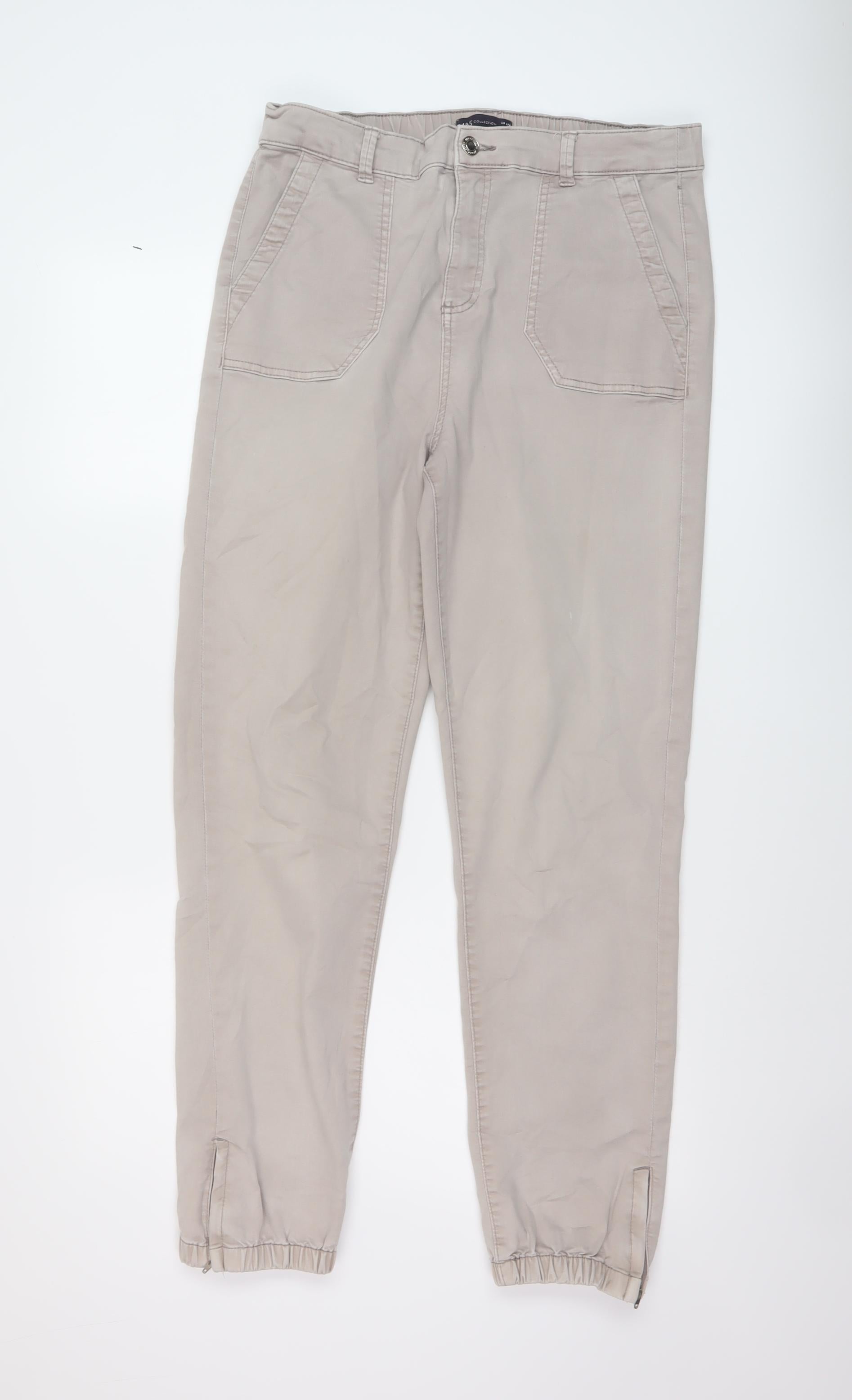 Marks and Spencer Womens Beige Cotton Jogger Trousers Size 14 L29 in Regular Button