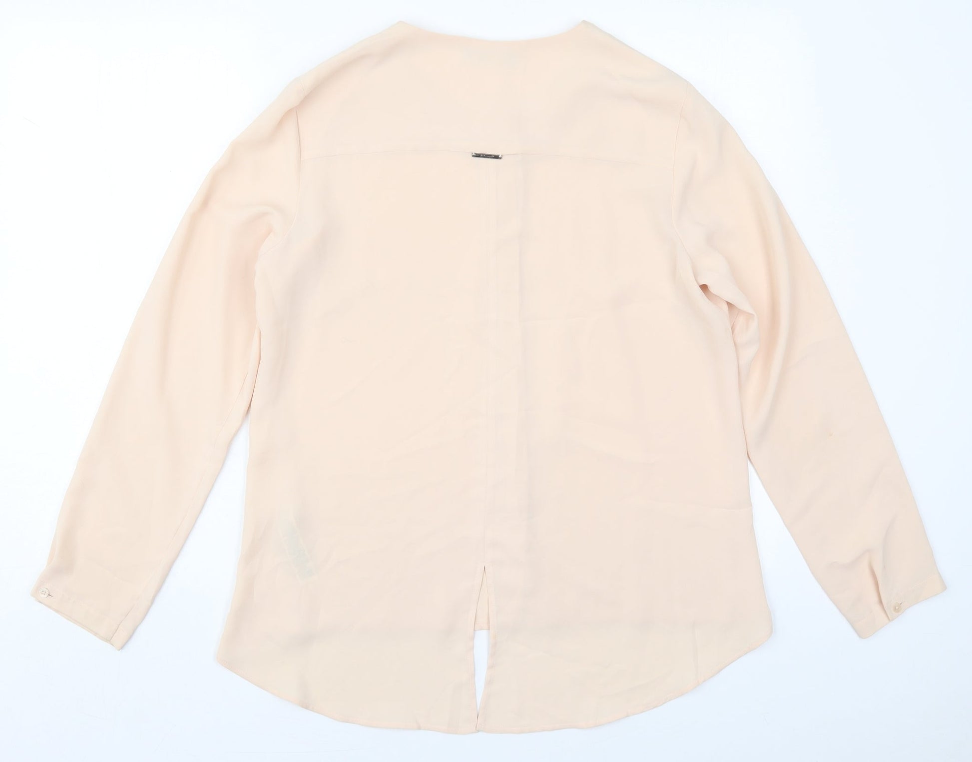 Marks and Spencer Womens Beige Polyester Basic Button-Up Size 12 Round Neck