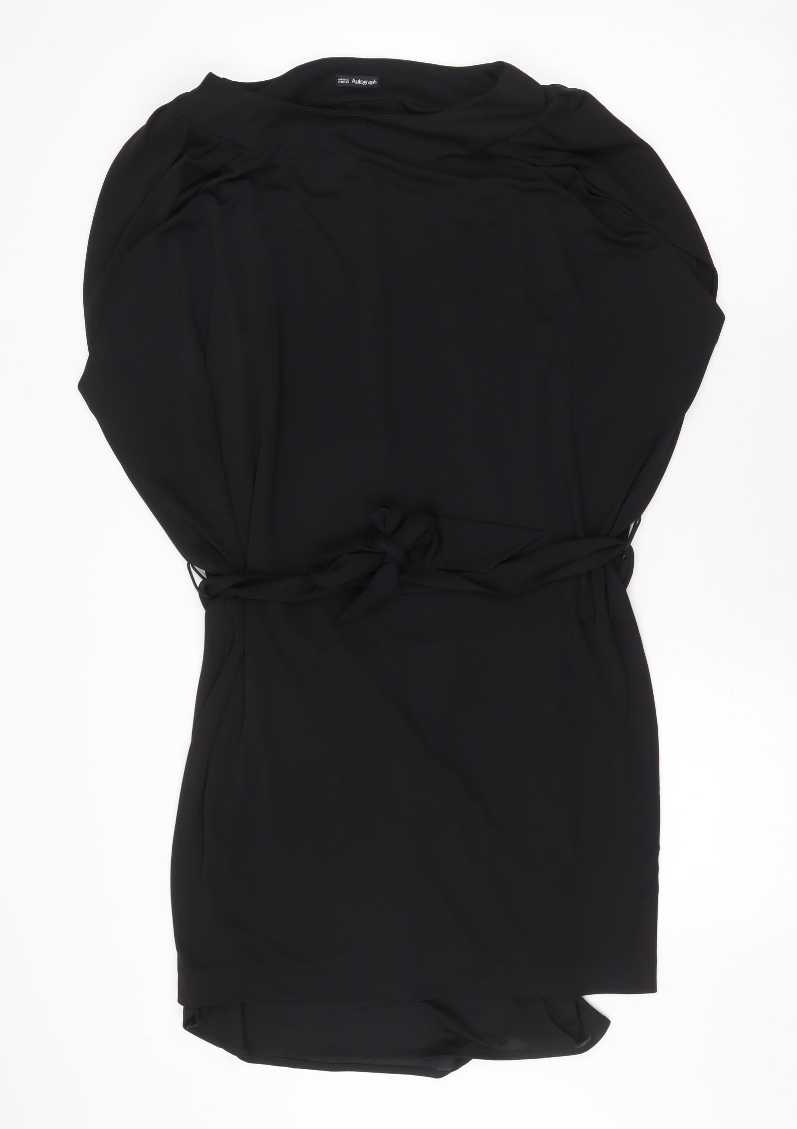 Marks and Spencer Womens Black Polyester Shift Size 10 Boat Neck Tie
