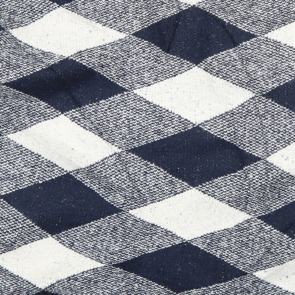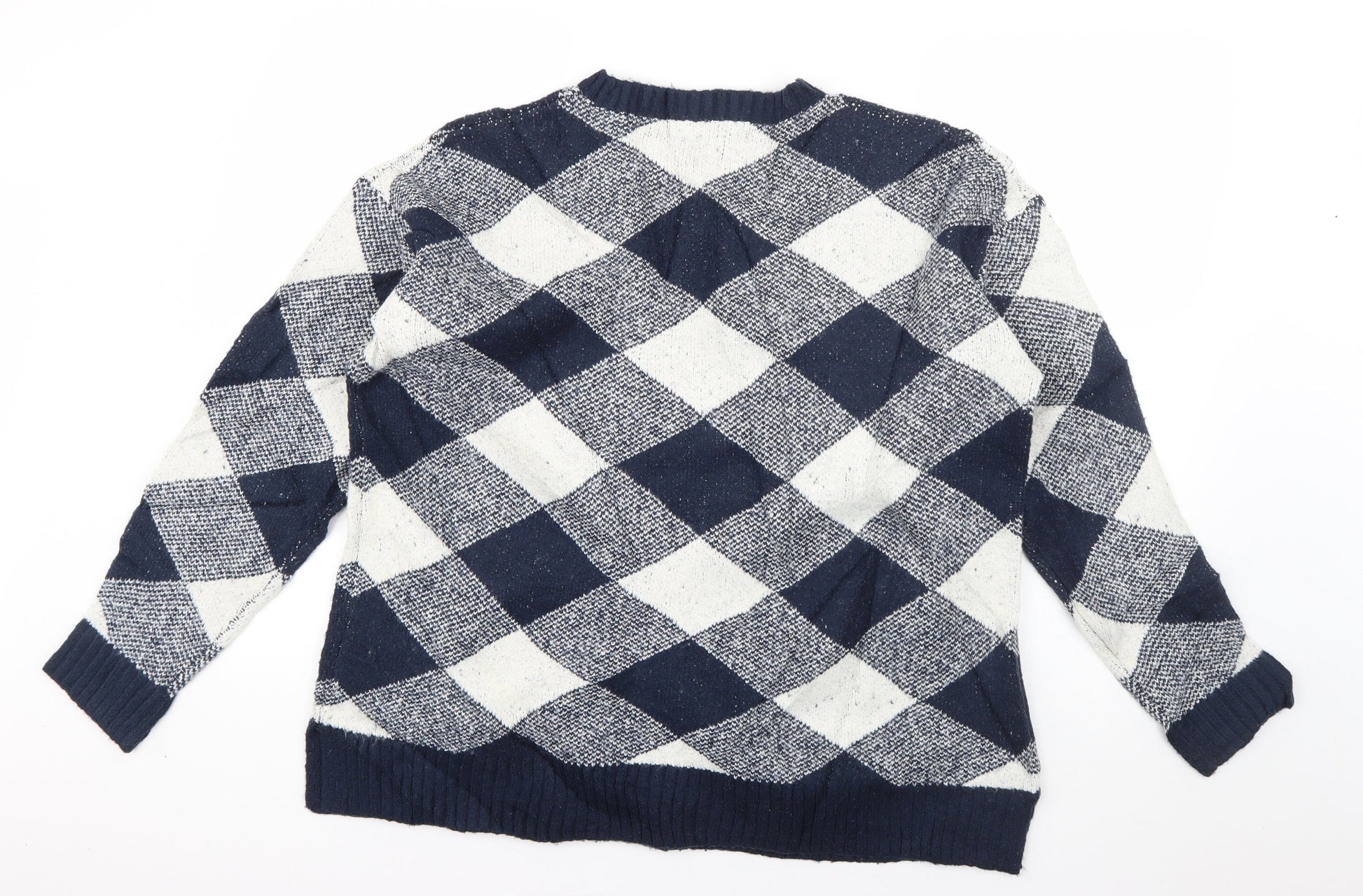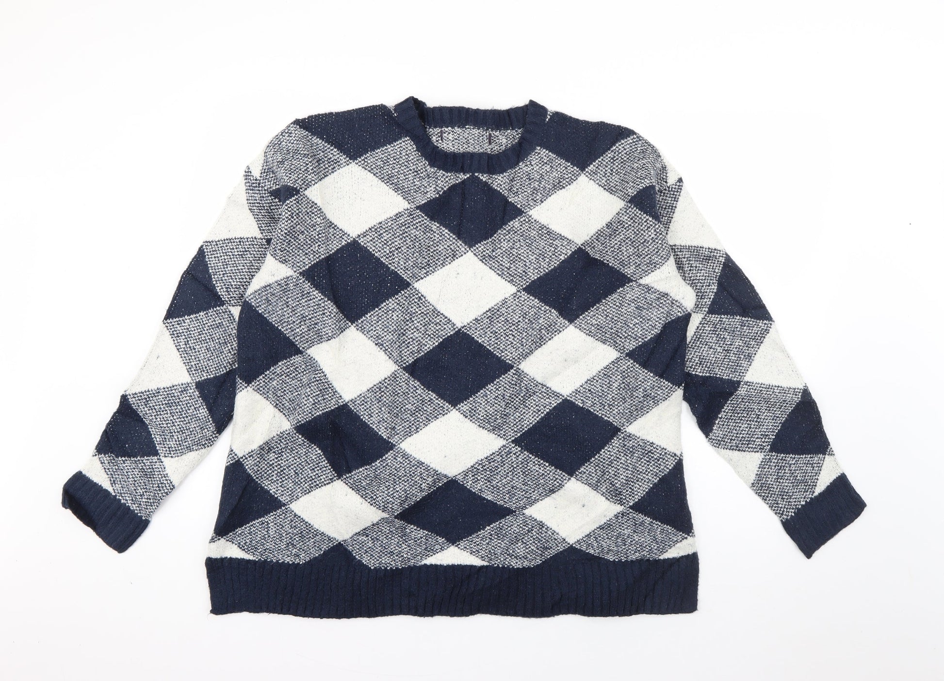 Marks and Spencer Womens Blue Crew Neck Check Acrylic Pullover Jumper Size L