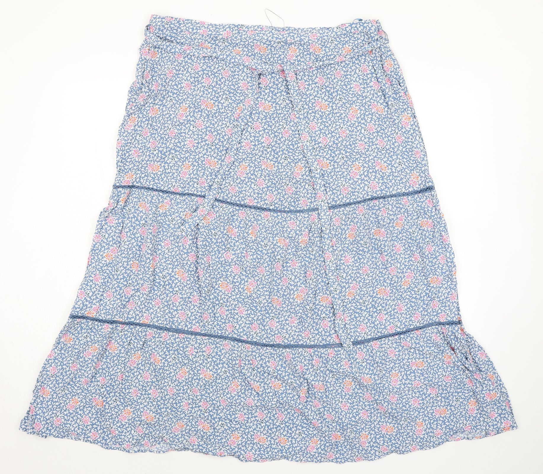 Marks and Spencer Womens Blue Floral Viscose A-Line Skirt Size 20 Zip - Belted