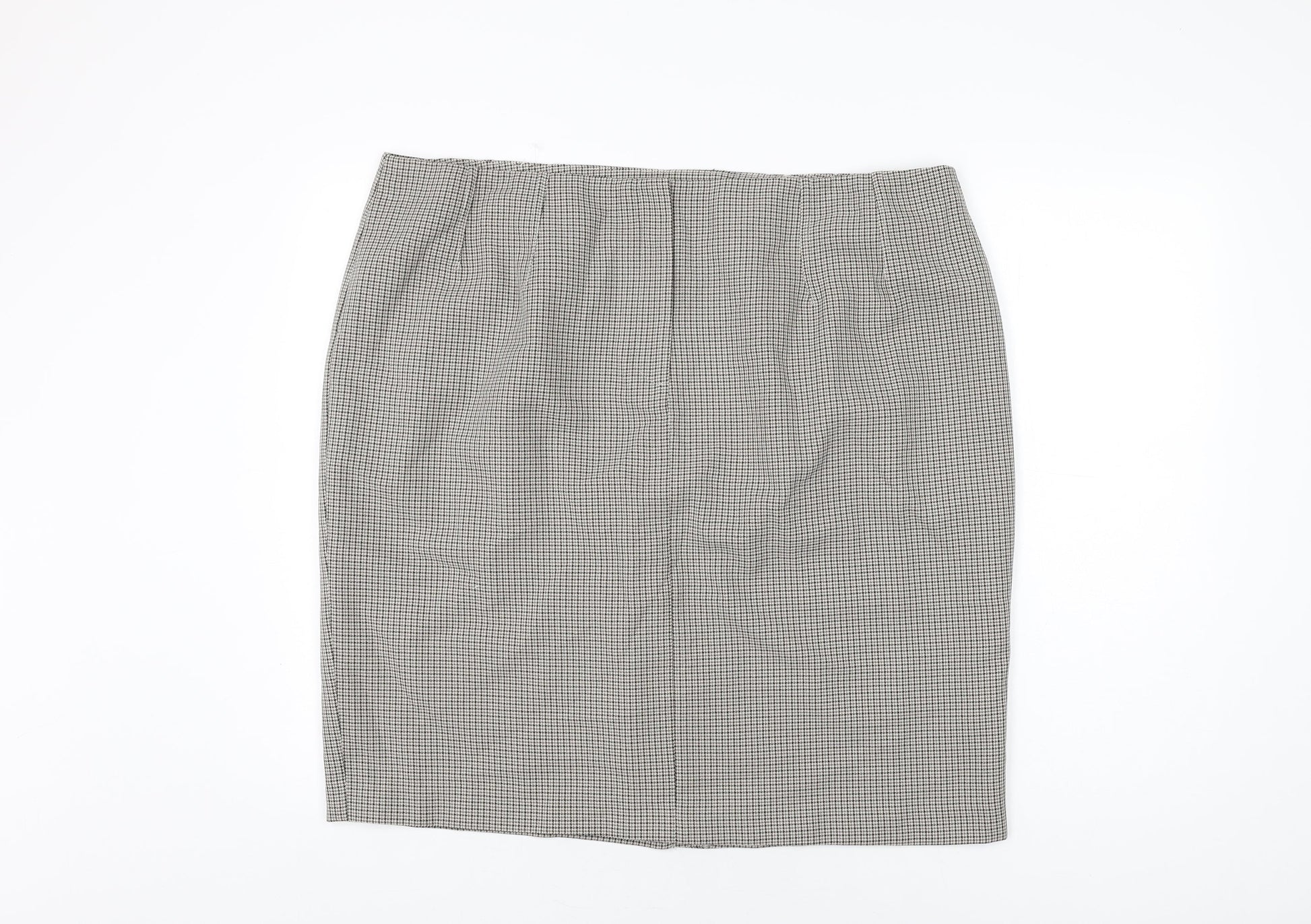 Marks and Spencer Womens Brown Geometric Polyester A-Line Skirt Size 22 Zip